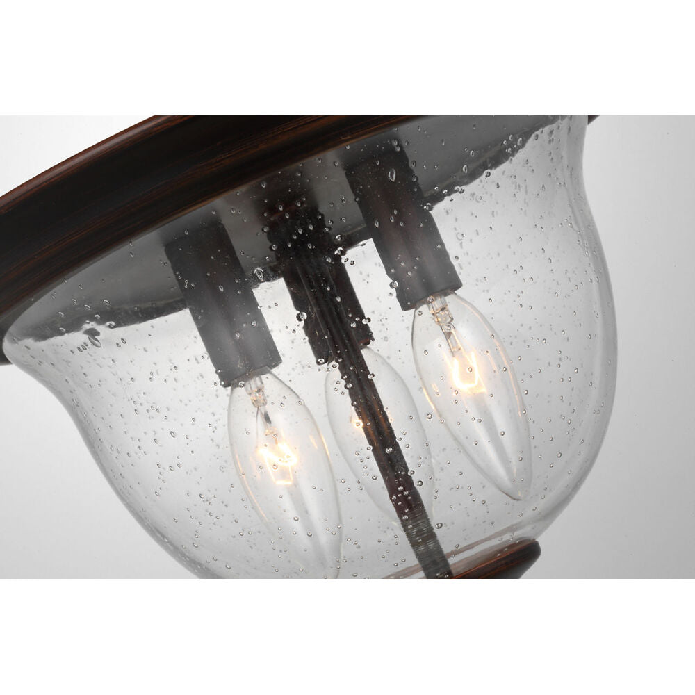 Belton transitional 3-light LED indoor dimmable ceiling flush mount in bronze finish with clear seeded glass diffuser