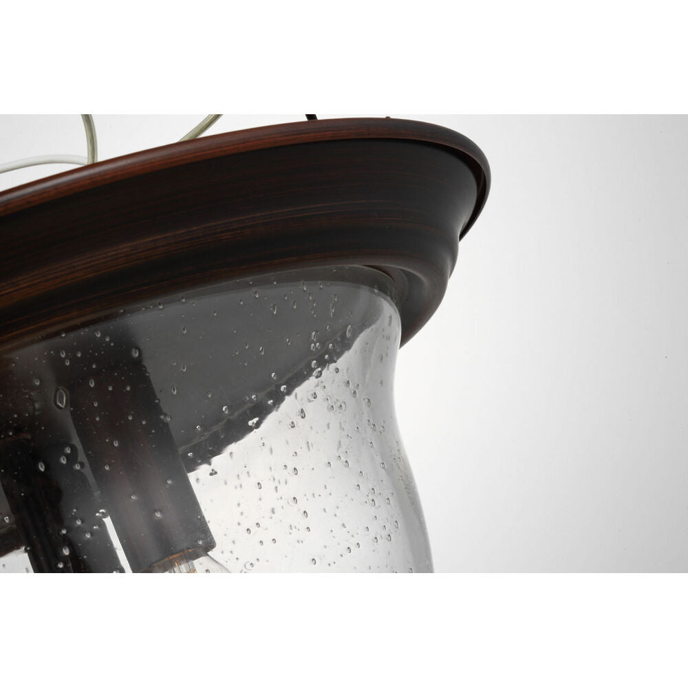 Influenced by the vintage industrial designs of early 20th Century America, the transitional Belton lighting series has seeded glass shades and Midnight Black finish, adding a layer of retro design to the warm look.