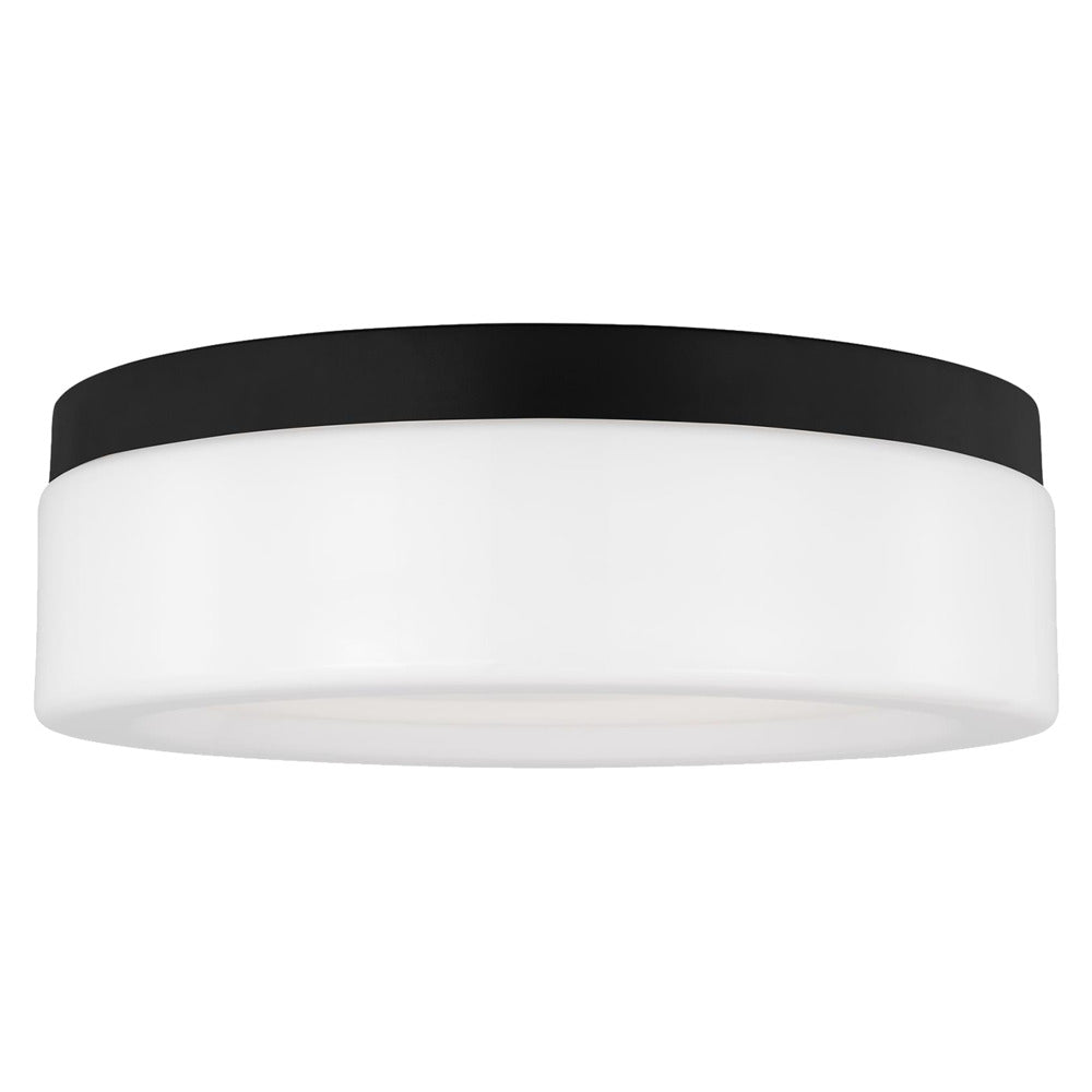 Rhett modern 1-light indoor dimmable medium ceiling flush mount in midnight black finish with concave white milk glass shade