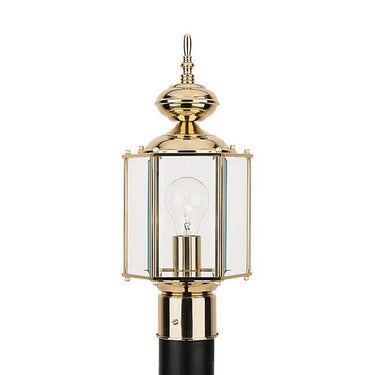 Classico traditional 1-light outdoor exterior post lantern in polished brass gold finish with clear beveled glass panels