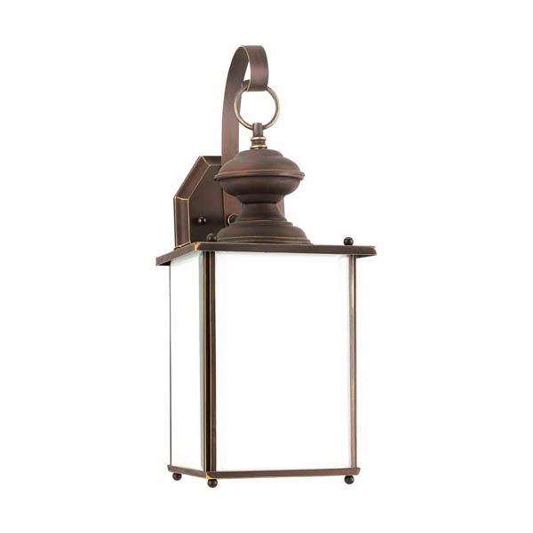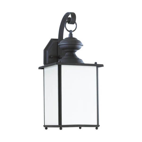 The Jamestowne one light outdoor wall fixture in black is an ENERGY STAR® qualified lighting fixture that uses LED bulbs to save you both time and money. The Jamestowne outdoor lighting collection by delivers a formal, traditional lantern style in proportions that won't overwhelm. Coupled with either Clear Beveled glass or Frosted Seeded glass, there are three beautiful finishes, including Black, Antique Brushed Nickel, or Antique Bronze. So the perfect design aesthetic will certainly be found to match any style of residential architecture. The assortment includes small, medium, large and extra-large one-light outdoor wall lanterns, a one-light outdoor post lantern and a two-light outdoor wall lantern. Clear bulbs are recommended for use with the Clear glass versions for a better aesthetic. There is also a Dark Sky version of the medium and large one-light outdoor wall lanterns for which Etched White Tiffany glass is used to control the light output.