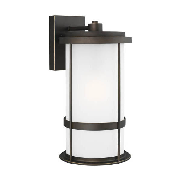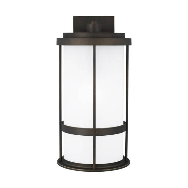 With a nod to retro-industrial chic, the Wilburn outdoor fixtures wraps a white frosted glass shade in a fun metal cage to create a casual and easygoing look. Offered in Antique Bronze and Black finishes with Etched White glass, the assortment includes a one-light outdoor pendant, small medium, large, and extra-large one-light outdoor wall lanterns, a one-light out door post lantern and a one-light outdoor ceiling flush mount. Both incandescent lamping and ENERGY STAR-qualified LED lamping are available for most of the fixtures, and some can easily convert to LED by purchasing LED replacement lamps sold separately.