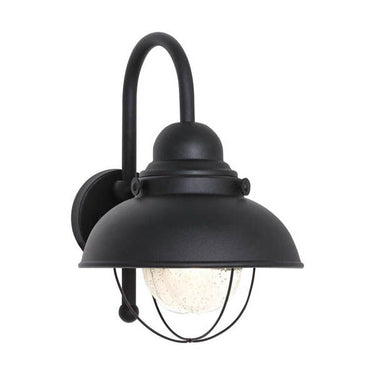 The Sebring one light outdoor wall fixture in black enhances the beauty of your property, makes your home safer and more secure, and increases the number of pleasurable hours you spend outdoors. This industrial and nautically inspired Sebring collection by coordinates perfectly in coastal locations, while adding eye catching contrast to facades of any kind. Offered in Black, Brushed Stainless and Weathered Copper finishes, Sebring is a complete outdoor collection with small and large one-light outdoor wall lanterns, a one-light outdoor ceiling flush mount and one-light outdoor post lantern to unify any home's appearance. Incandescent as well as integrated LED are available. The advanced, integrated LED light source has warm-on-dim technology that warms in color when dimmed, and is California Title 24 compliant.