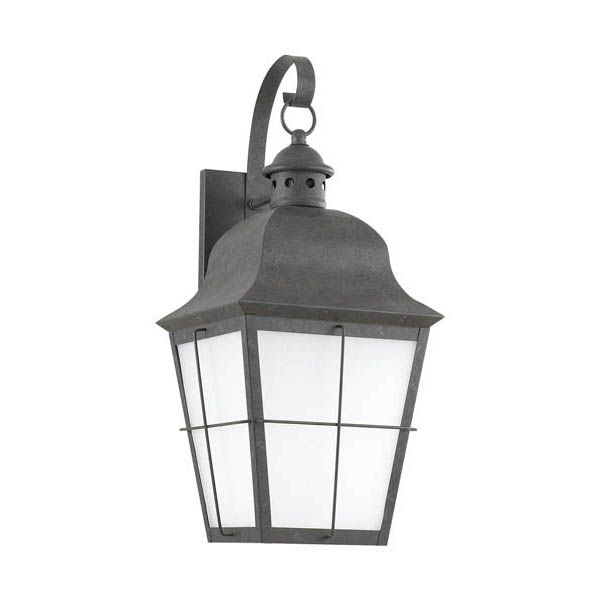 Chatham traditional 1-light large outdoor exterior wall lantern sconce in oxidized bronze finish with frosted seeded glass panels