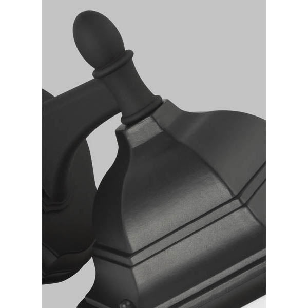 The Sevier one light outdoor wall fixture in black creates a warm and inviting welcome presentation for your home's exterior. The Sevier outdoor collection by brings timeless design to new heights with its traditional design details found in classic outdoor fixtures as well as an open bottom for easy maintenance. Made of durable cast aluminum, a multi-level crown, top finial and stepped-edge back plate complete the traditional look. Offered in Antique Bronze or Black finish, both with Clear glass, the collection includes a one-light outdoor pendant, one-light post lantern, a large one-light up light outdoor wall lantern, a small one-light up light outdoor wall lantern, a small one-light downlight outdoor wall lantern, and a large one-light downlight outdoor wall lantern.