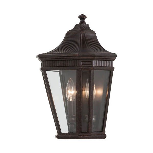 The traditional, antique gas lantern-inspired design of Cotswold Lane features dentil molding at the top of each pane of beveled glass. Cotswold Lane's profile is timeless and elegant. Available with two finish and glass options: a Black or Grecian Bronze frame with Clear Beveled glass or Clear Seeded glass panels.