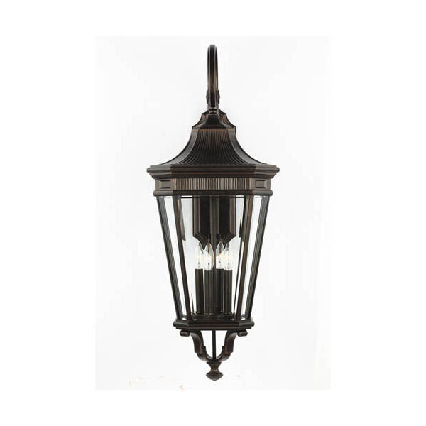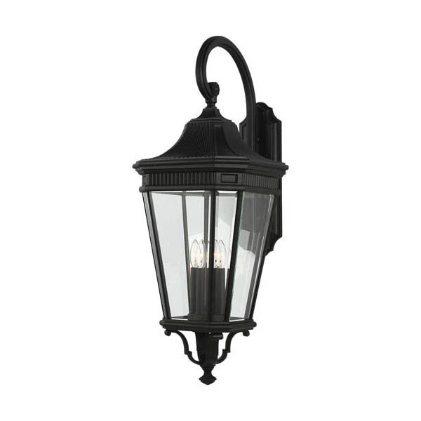 The traditional, antique gas lantern-inspired design of Cotswold Lane features dentil molding at the top of each pane of beveled glass. Cotswold Lane's profile is timeless and elegant. Available with two finish and glass options: a Black or Grecian Bronze frame with Clear Beveled glass or Clear Seeded glass panels.