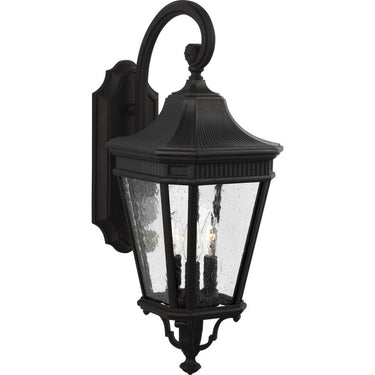 The traditional, antique gas lantern-inspired design of Cotswold Lane features dentil molding at the top of each pane of beveled glass. Cotswold Lane's profile is timeless and elegant. Available with two finish and glass options: a Black or Grecian Bronze frame with Clear Beveled glass or Clear Seeded glass panels.