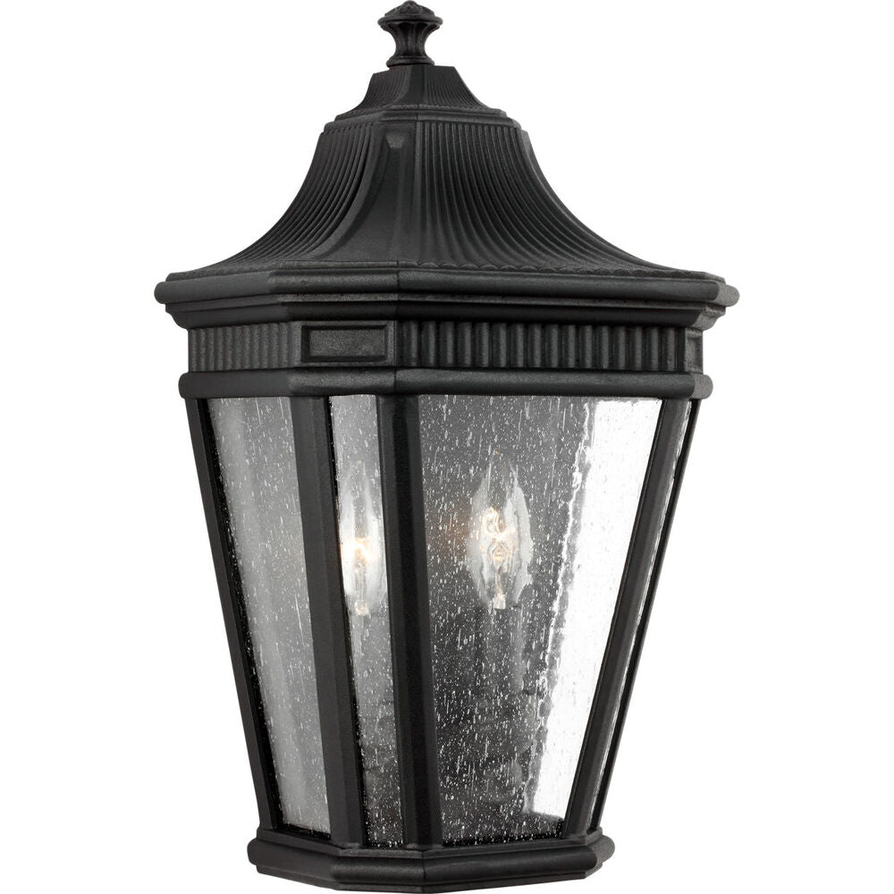 The traditional, antique gas lantern-inspired design of Cotswold Lane features dentil molding at the top of each pane of beveled glass. Cotswold Lane's profile is timeless and elegant. Available with two finish and glass options: a Black or Grecian Bronze frame with Clear Beveled glass or Clear Seeded glass panels.