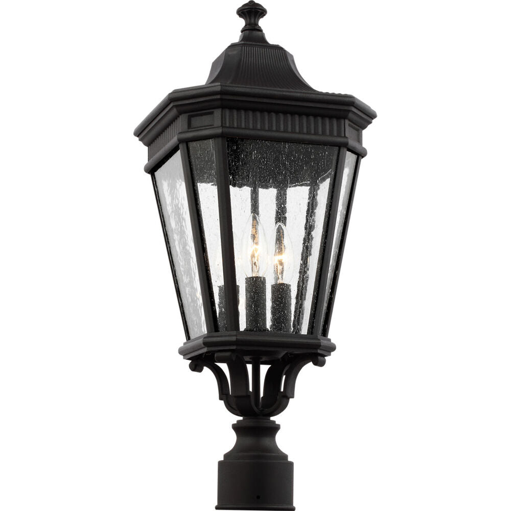 The traditional, antique gas lantern-inspired design of Cotswold Lane features dentil molding at the top of each pane of beveled glass. Cotswold Lane's profile is timeless and elegant. Available with two finish and glass options: a Black or Grecian Bronze frame with Clear Beveled glass or Clear Seeded glass panels.