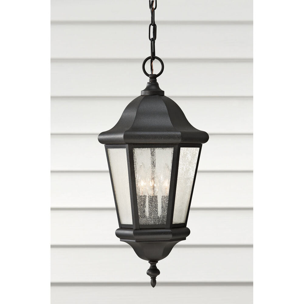 Martinsville traditional 3-light outdoor exterior pendant lantern in black finish with clear seeded glass shades
