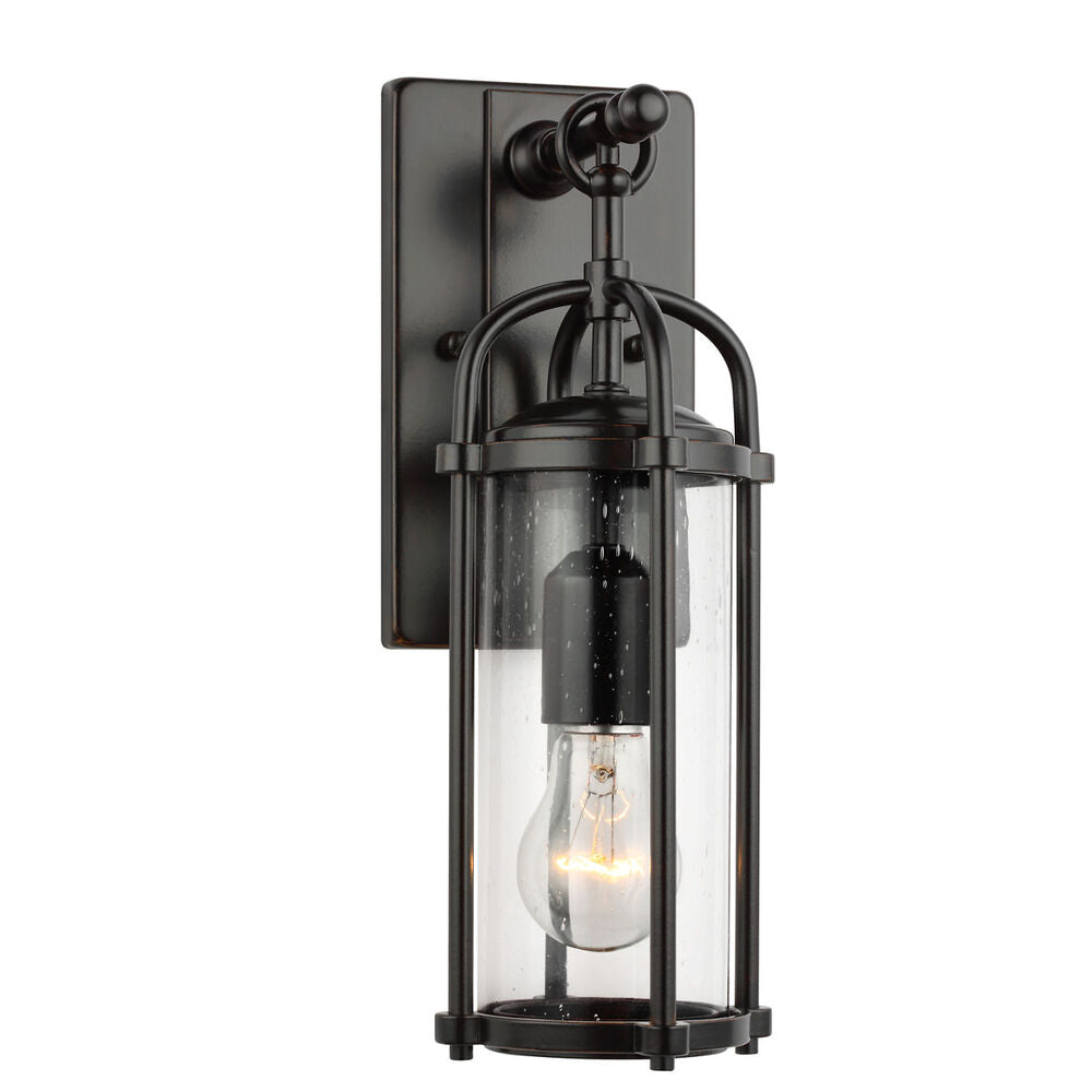 The Dakota one light outdoor wall fixture in espresso enhances the beauty of your property, makes your home safer and more secure, and increases the number of pleasurable hours you spend outdoors. The Dakota Collection is a contemporary take on a traditional lantern that is elegantly suspended from the backplate. The delicate lines on Dakota's streamlined frame rise softly into a curved crown. Dakota is available in an Espresso finish with a choice of either an Opal Etched glass shade or a Clear Seeded glass shade.