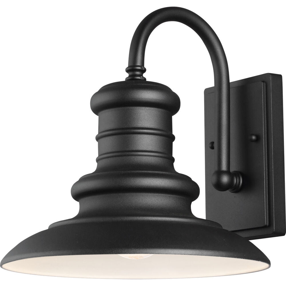 The Redding Station one light outdoor wall fixture enhances the beauty of your property, makes your home safer and more secure, and increases the number of pleasurable hours you spend outdoors. All Aboard! Reminiscent of old railroad lighting, the Redding Station Collection warmly illuminates its surroundings with a vintage railroad vibe. The all-aluminum shades feature textured details. Redding Station is available in three finish options: Tarnished Silver, Restoration Bronze and Textured Black.