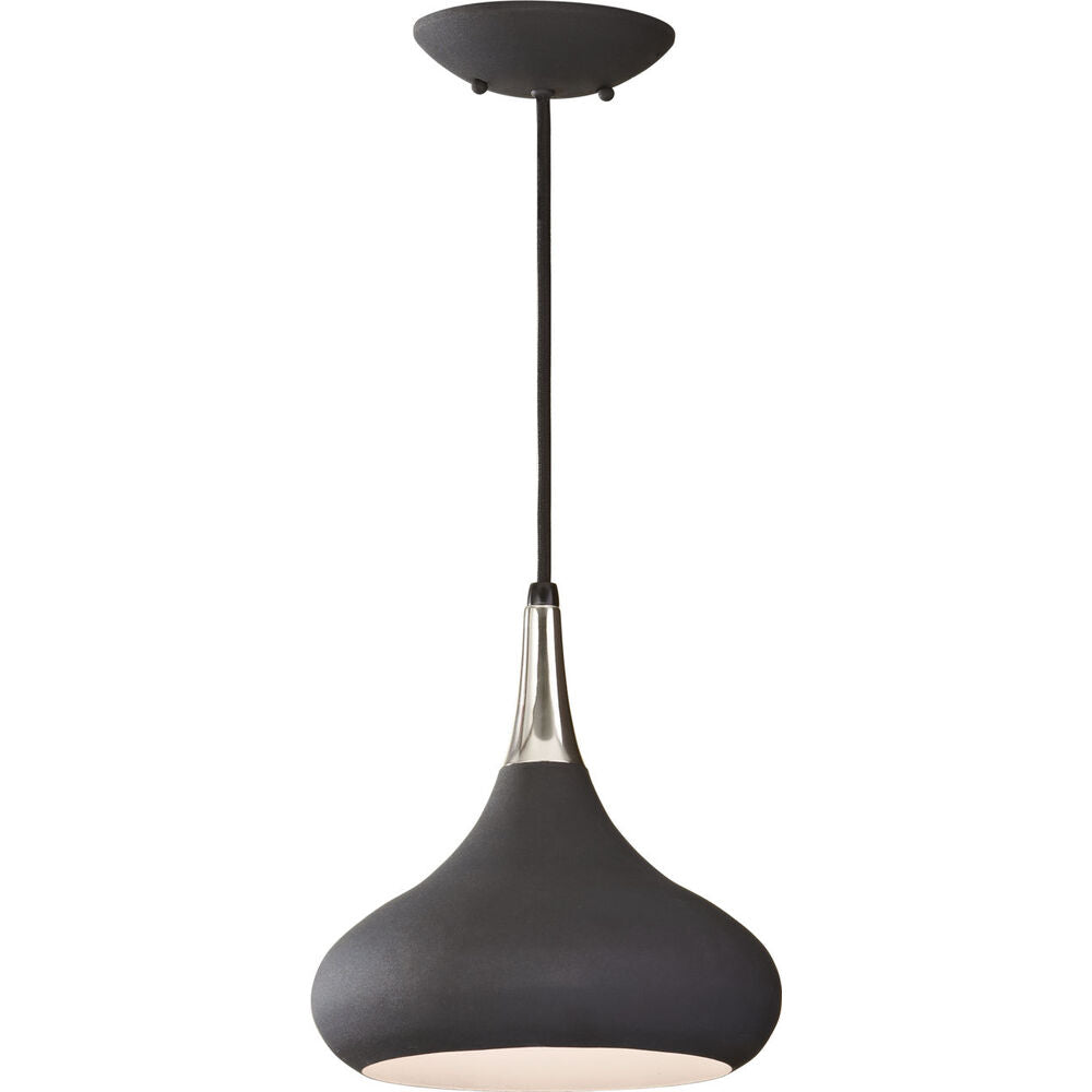 The Belle one light mini pendant in black is the perfect way to achieve your desired fashion or functional needs in your home. The Belle lighting collection of pendants by is inspired by 1960as Scandinavian designs featuring sleek, simple lines offered in three sizes and various finish combinations including beautifully contrasting two-toned finishes. The modern Belle pendant lights are fun and dramatic when hung as a single fixture and absolutely spectacular when grouped together in a multi-pendant lighting installation. (This collection was previously known as the Beso collection.)