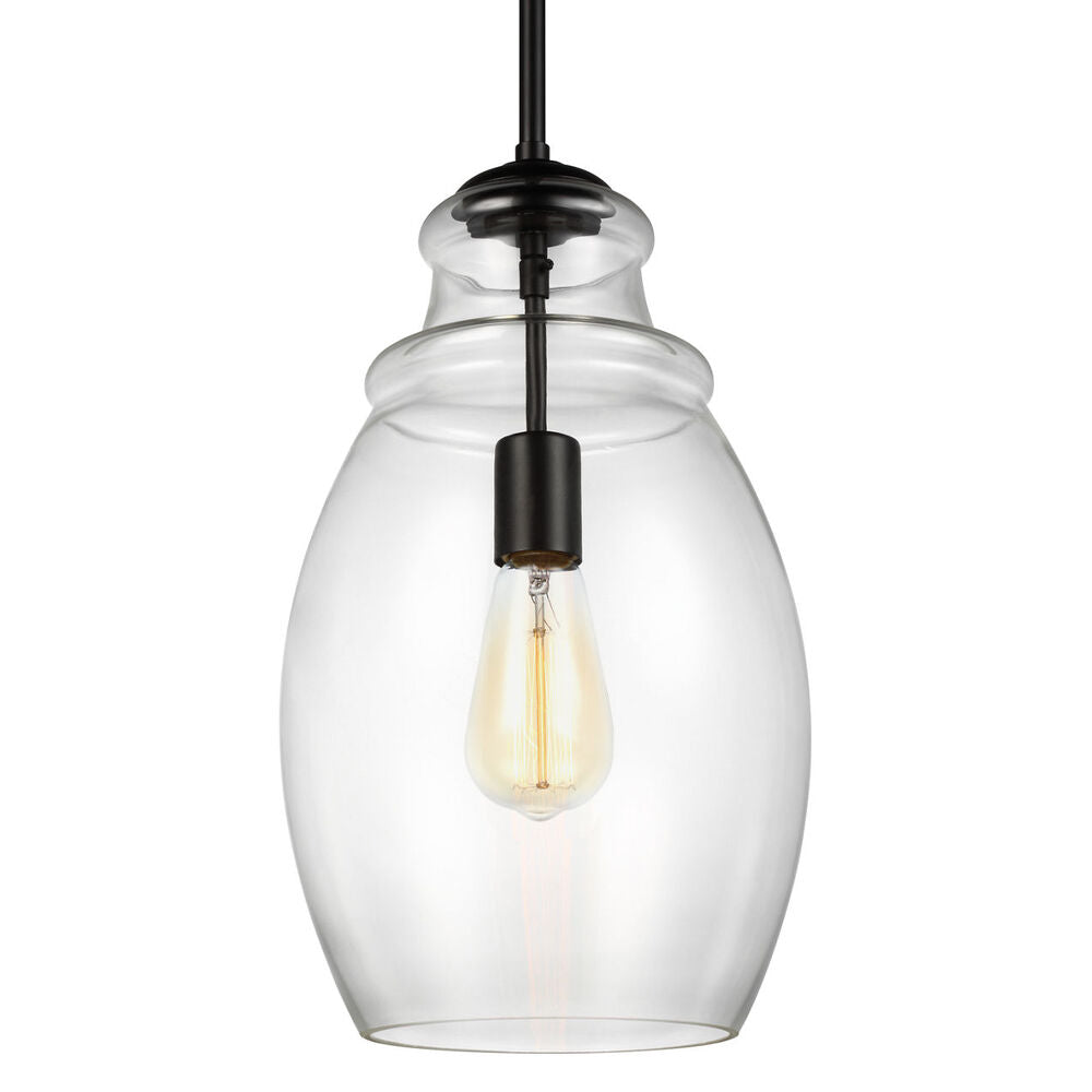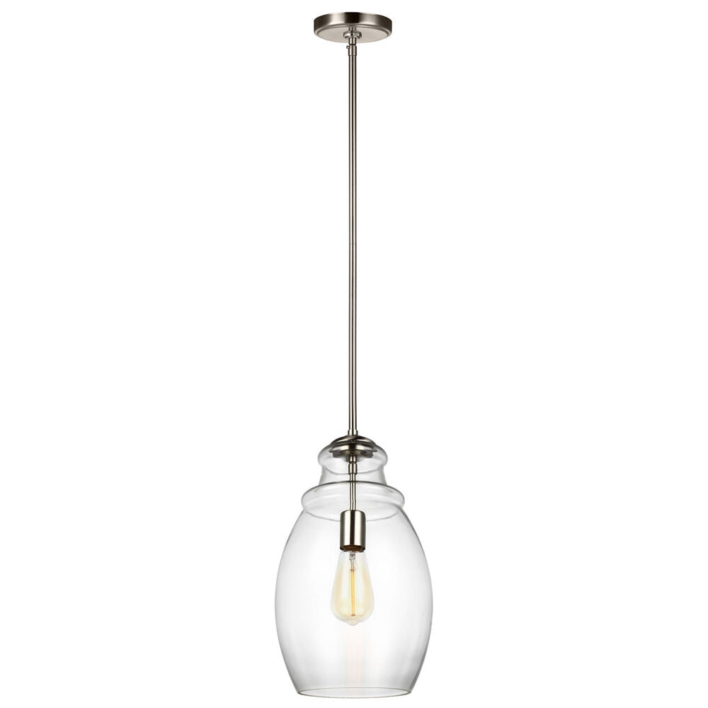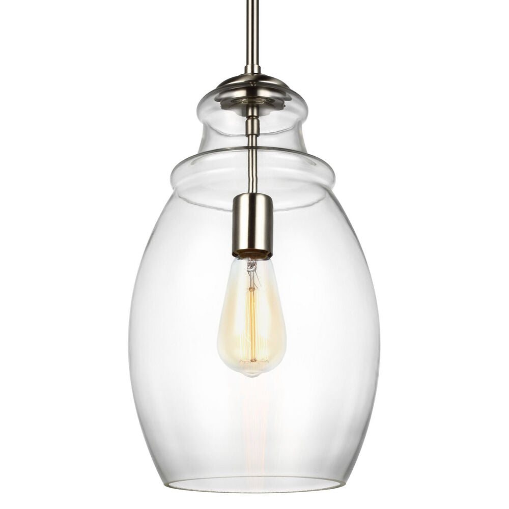 Marino features a thick Clear Glass shade with a single lamp suspending downward from the center.