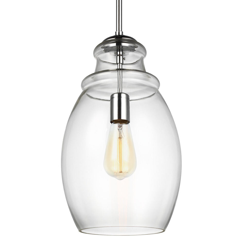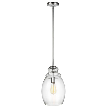 The Marino one light indoor pendant in chrome is the perfect way to achieve your desired fashion or functional needs in your home. Marino features a thick Clear Glass shade with a single lamp suspending downward from the center. The elegant turning detail at the top of the body compliments spaces ranging from traditional to modern. Marino is offered in three distinct finish options: Satin Nickel, Chrome and Oil Rubbed Bronze.