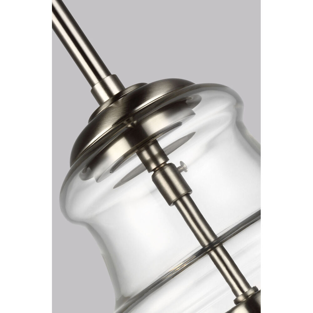 The Marino one light indoor pendant is the perfect way to achieve your desired fashion or functional needs in your home. Marino features a thick Clear Glass shade with a single lamp suspending downward from the center. The elegant turning detail at the top of the body compliments spaces ranging from traditional to modern. Marino is offered in three distinct finish options: Satin Nickel, Chrome and Oil Rubbed Bronze.