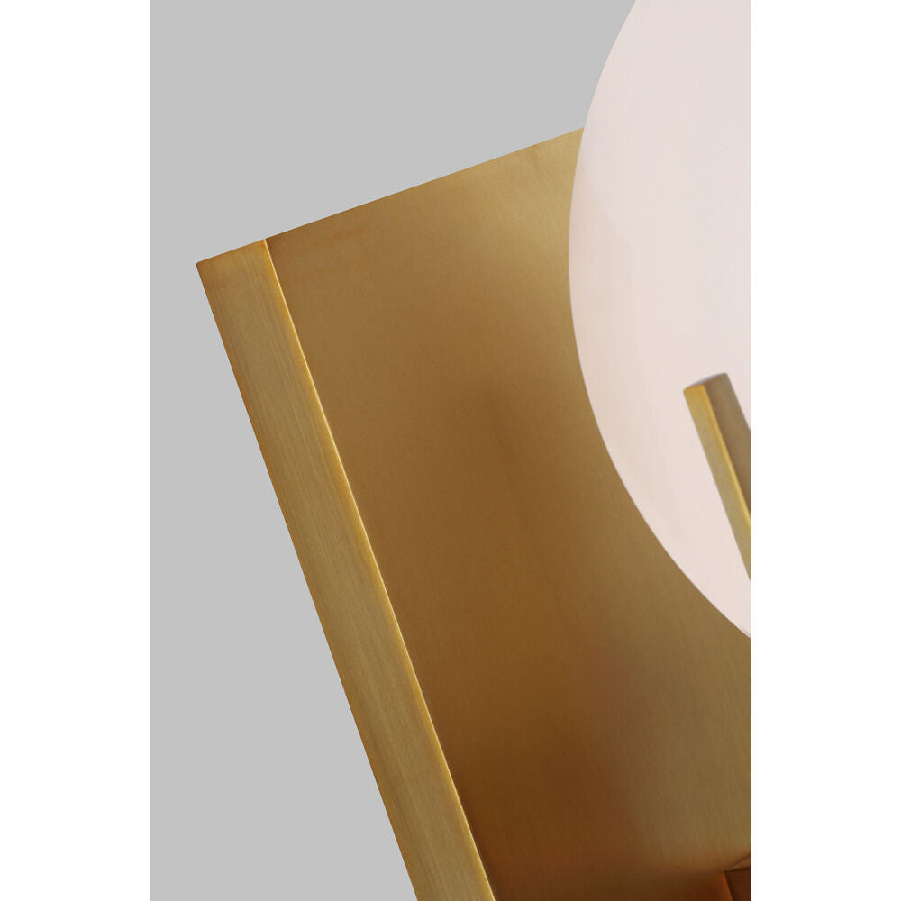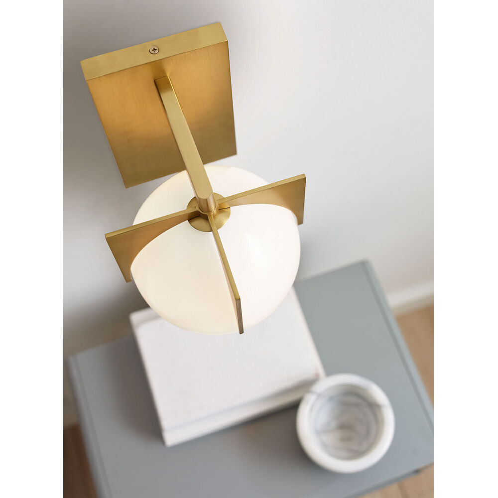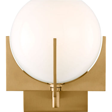 The Abbott one-light wall sconce in Burnished Brass provides abundant light for your bath vanity while adding a layer of today's style to your interior design. An updated take on a retro design, the Abbott vanity lights bring a splash of mid-century modern inspiration to your decor. Crafted of metal and suited for damp spaces, this streamlined fixture is offered in three sizes to fit comfortably above a vanity or single as a sconce-round-shaped milk glass shades in a satin hue complete the look and diffuse brightness.