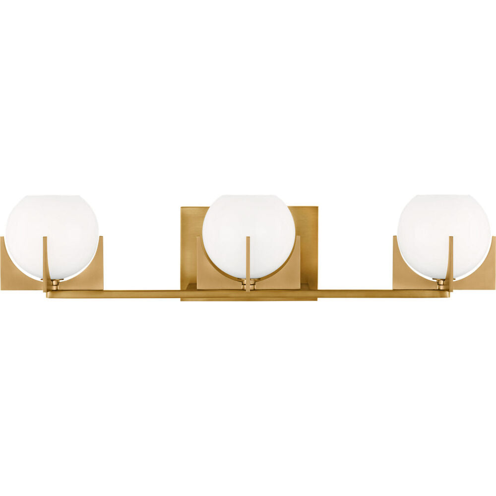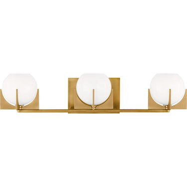 The Abbott three-light vanity fixture in Burnished Brass provides abundant light for your bath vanity while adding a layer of today's style to your interior design. An updated take on a retro design, the Abbott vanity lights bring a splash of mid-century modern inspiration to your decor. Crafted of metal and suited for damp spaces, this streamlined fixture is offered in three sizes to fit comfortably above a vanity or single as a sconce-round-shaped milk glass shades in a satin hue complete the look and diffuse brightness.