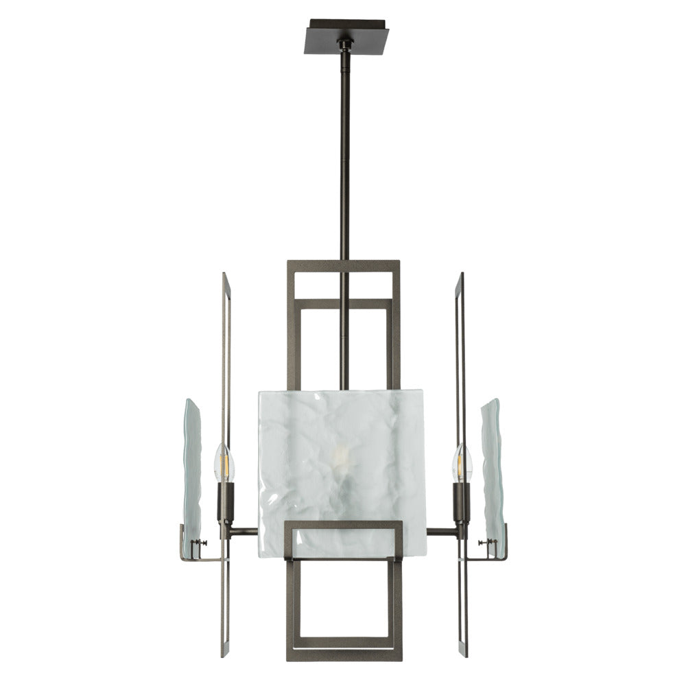 Inspired by the Arc lanterns, designer Ori Goldberg wanted to create a more contemporary, geometric lighting collection. By playing with the layering of glass, he was able to achieve a topographic aesthetic, with very clean, modern vertical steel rectangular elements.