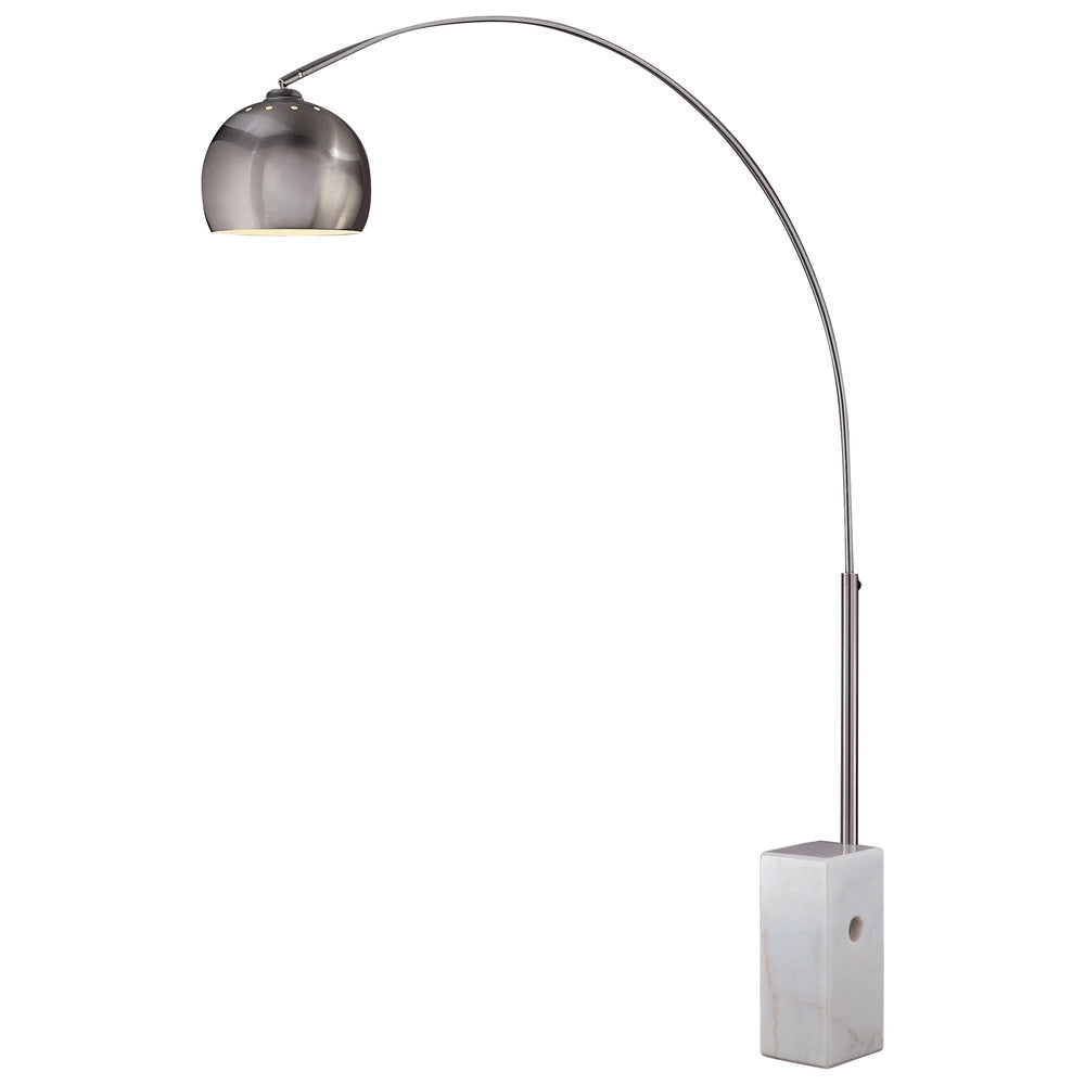 1 Light Arc Floor Lamp with Brushed Nickel finish and White Marbel Base and Metal Shade