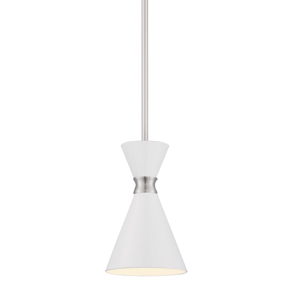 George Kovacs P1821-44F 1 Light Mini Pendant with Brushed Nickel finish and Glitter Gloss White Shade