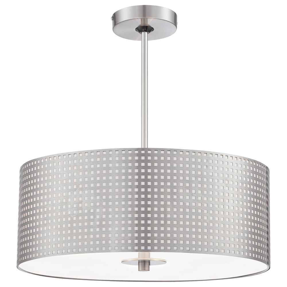 3 Light Pendant with Brushed Nickel Finish and Perforated Steel Shade Etched Glass Diffuser
