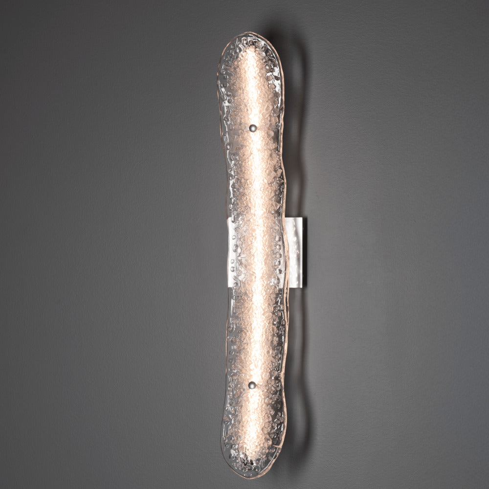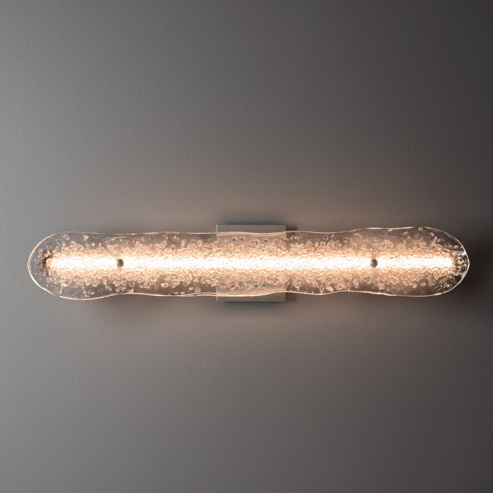 Inspired by jagged edges of ice on a midwestern pond, designer Andy Morter saw something rare and beautiful. With its heavily textured, large frit glass element, the Glissade LED Bath Bar features clear, hand-poured glass to great effect. Position horizontally above a mirror, or vertically on either side, the Glissade casts just the right light.