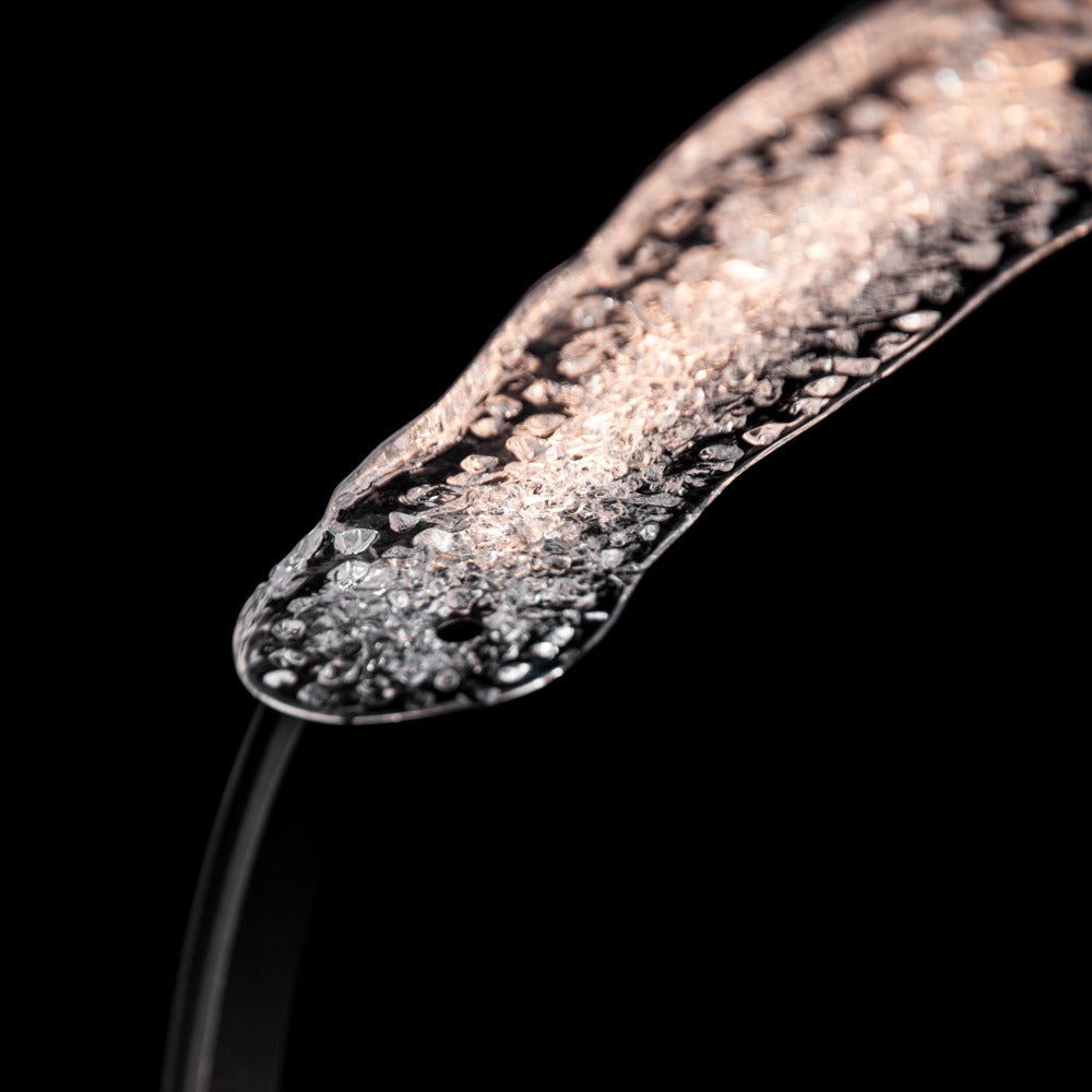 Inspiration for the Glissade struck designer Andy Morter as he was walking across an icy midwestern pond. "[The jagged edges of the ice] were unlike anything else I'd seen in nature. There's something raw and beautiful in that contrast-sharp yet serene, delicate yet strong." With its gracefully curved steel arm and base dimmer, this table lamp does double work as both a decorative and task light.