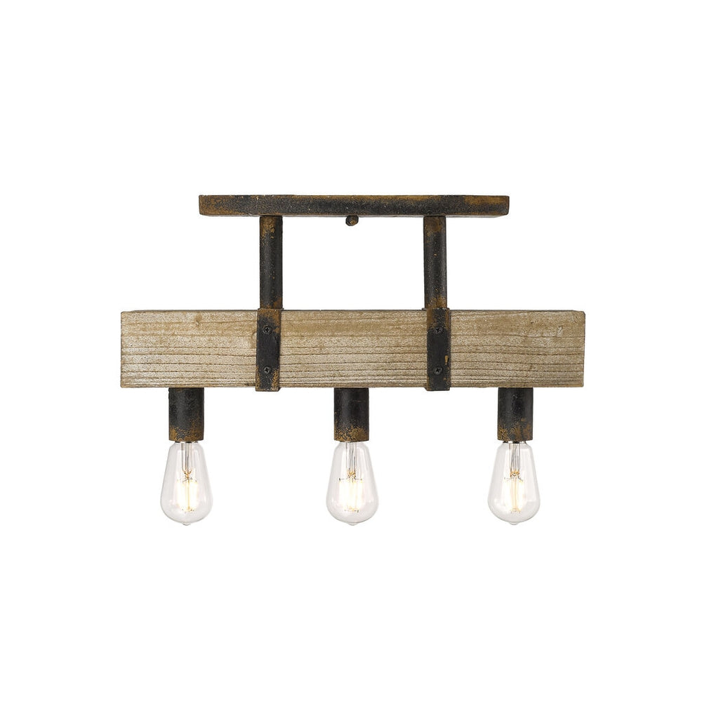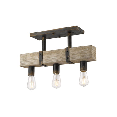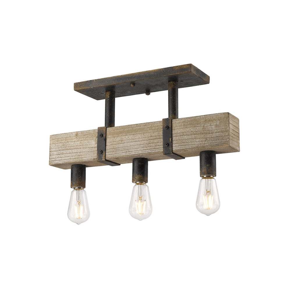 Garrett's rustic design combines the appeal of raw wood materials and industrial-style metalwork for a casual look. The fixture's hardware is painted in a contrasting antique black iron finish with gold highlights to balance the natural wood grain. This fixture's low profile design allows Garrett to fit in perfectly in any farmhouse-chic space.
