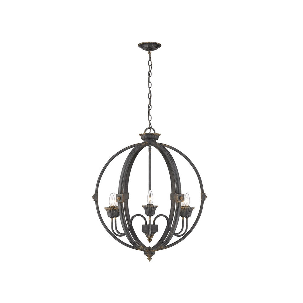 The Jules Collection features casual, spherical chandeliers. This six-light chandelier is finished in a multi-layered antique ivory and features a rusty, gold patina that takes you back in time. This light colored chandelier gives off an upbeat ambiance as the candle-style arms hold bulbs in the middle. Chandeliers create stylish focal points and this six-light is comfortably sized for a dining room, living room, or entry.