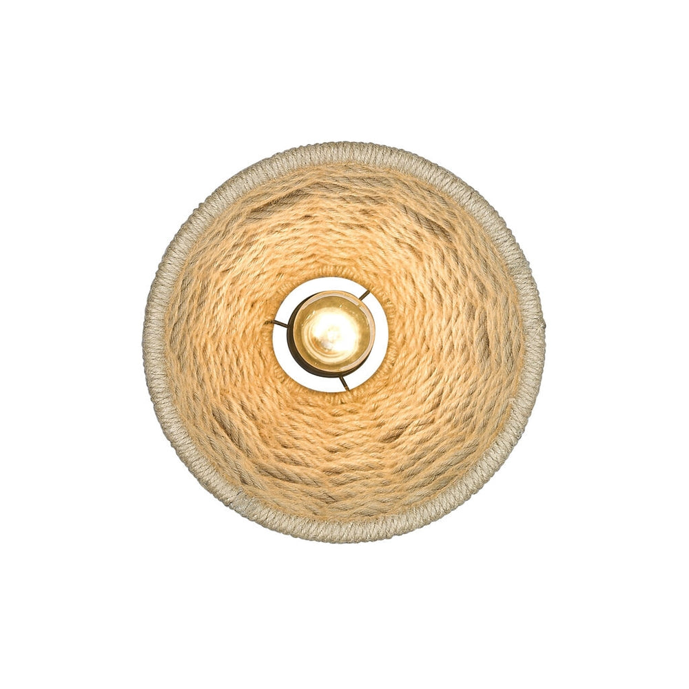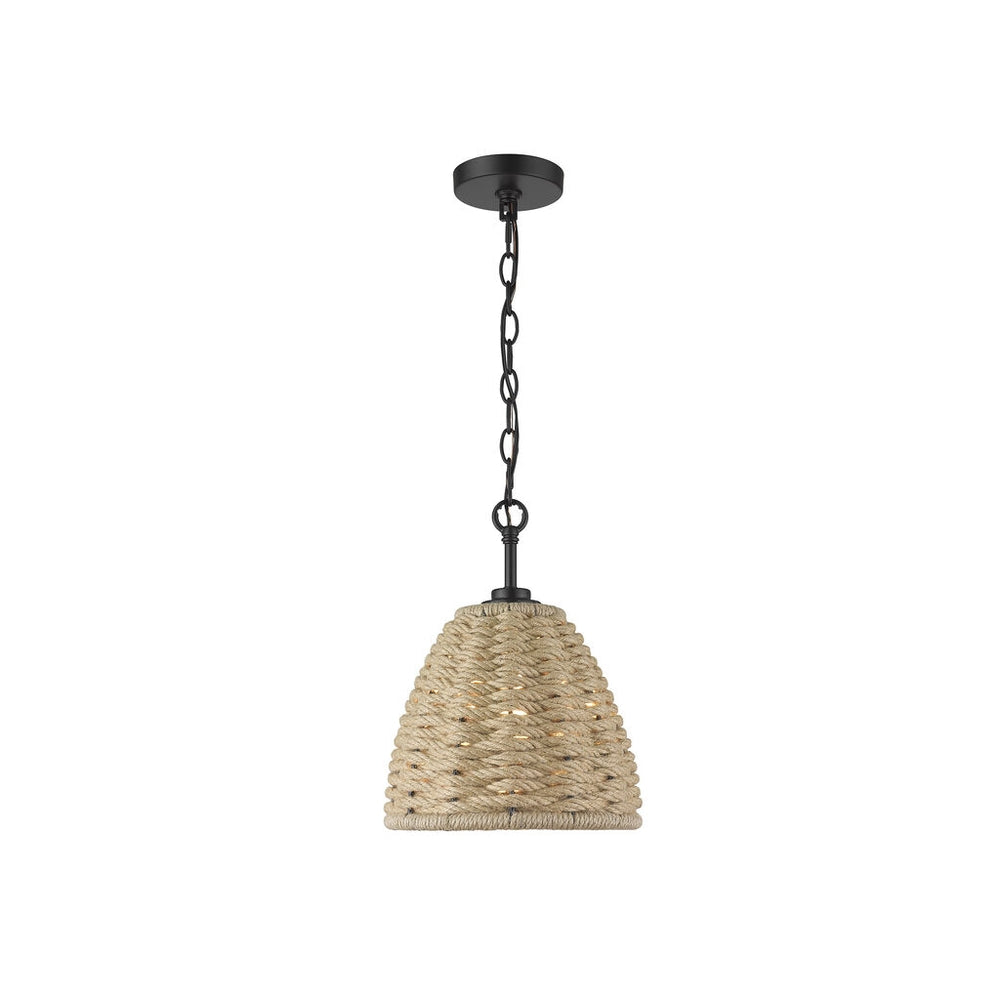 Golden Lighting 1073-M1L BLK Hathaway Mini Pendant in Matte Black with Woven Hemp Rope Shade