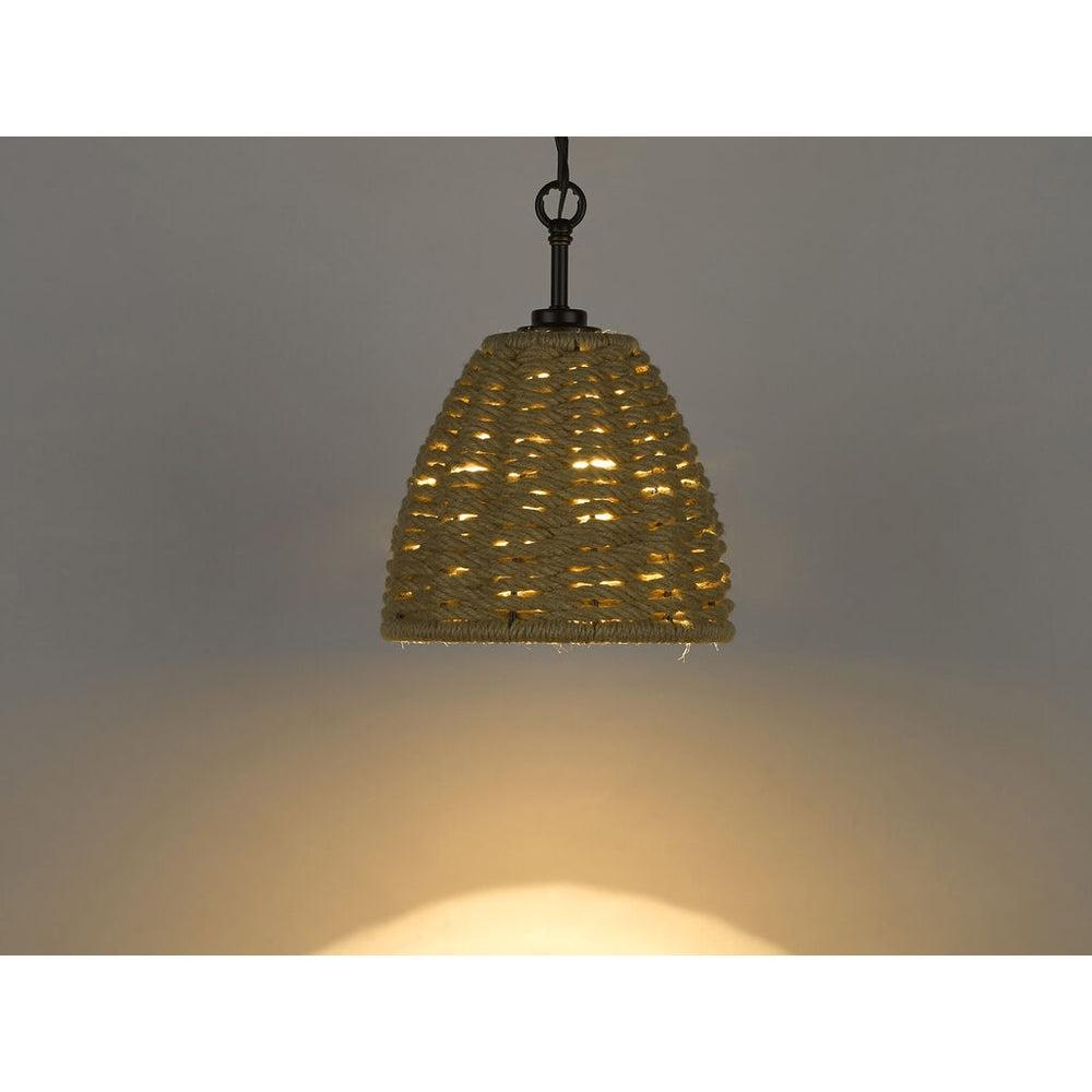 Add casual, country-cottage flair to your space with Hathaway. Thick natural fiber rope (composed of Woven Hemp Rope) is interlaced in a woven fashion to create a basket shade. A smooth, matte black finish creates visual contrast. Great for task lighting, bright downlight spills from the open-bottom shade.