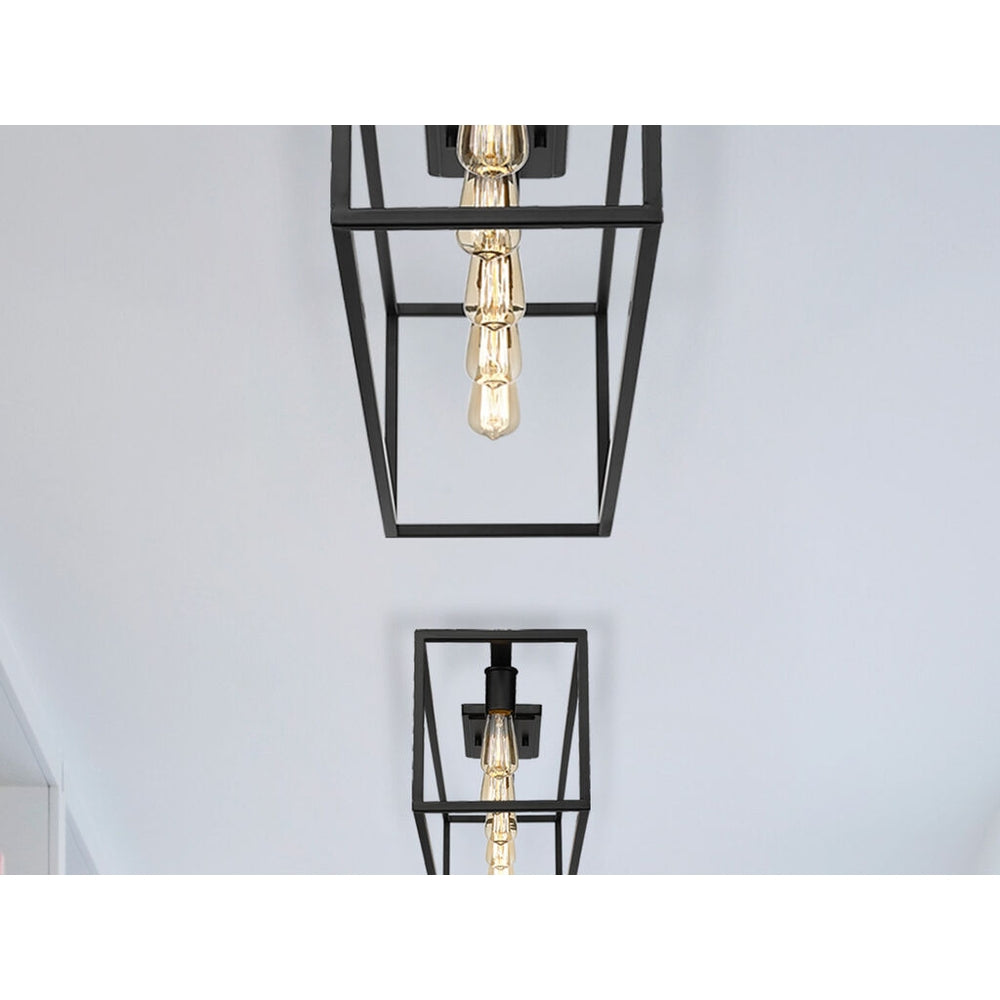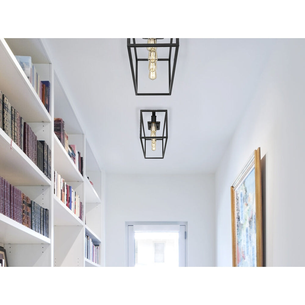 Wesson is a clean contemporary collection that is available in multiple finishes. The industrial look of the series is enhanced by exposed medium-based bulbs. A bold, square open-bottom geometric cage adds visual interest. Complete the modern, rustic look by installing Edison Bulbs. These flush mounts are generously sized for hallways and foyers.