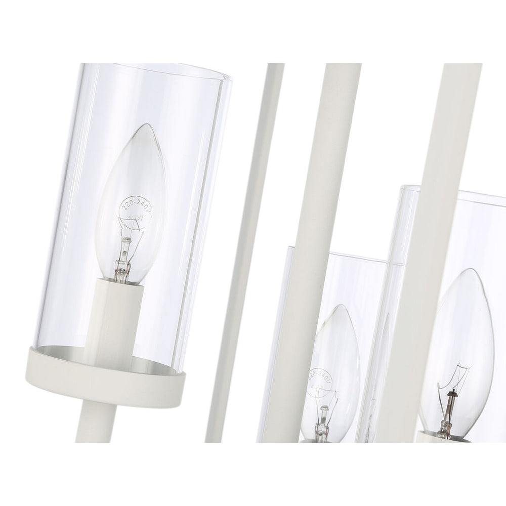 - Clear Glass cylinders encase steel candles and candelabra bulbs