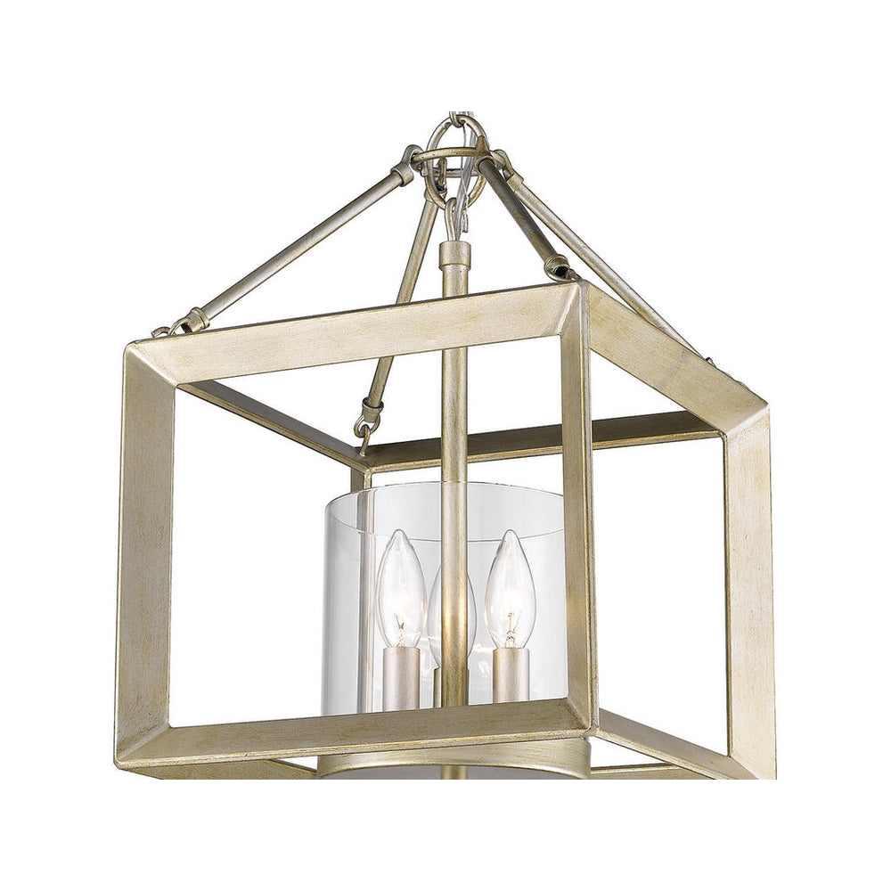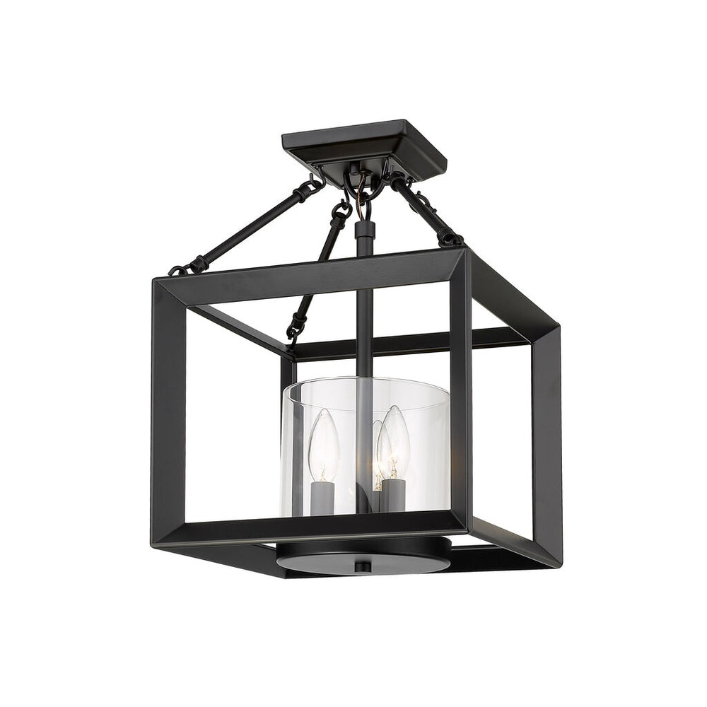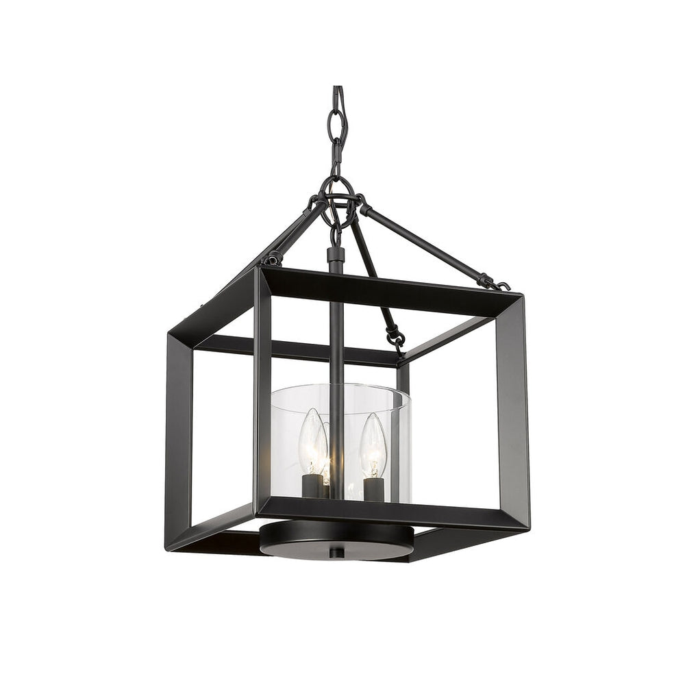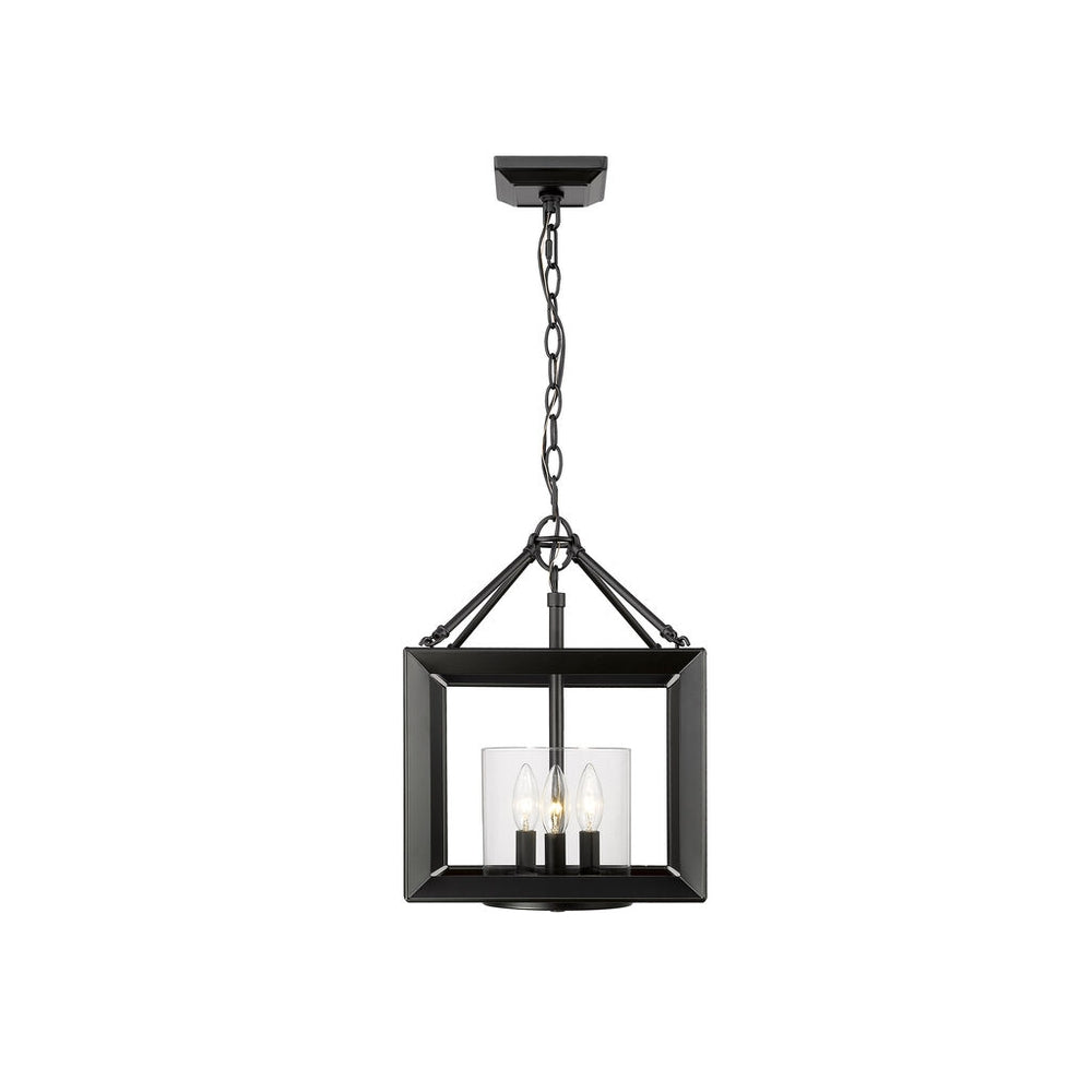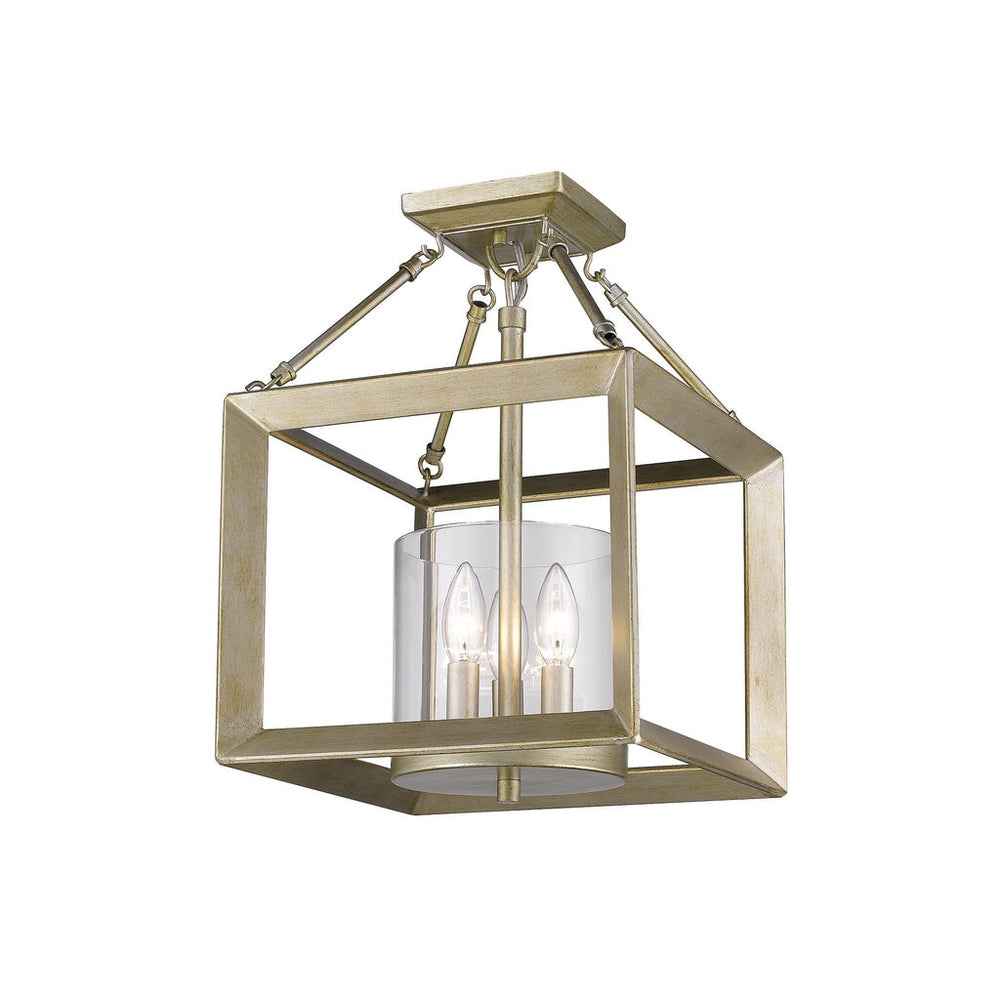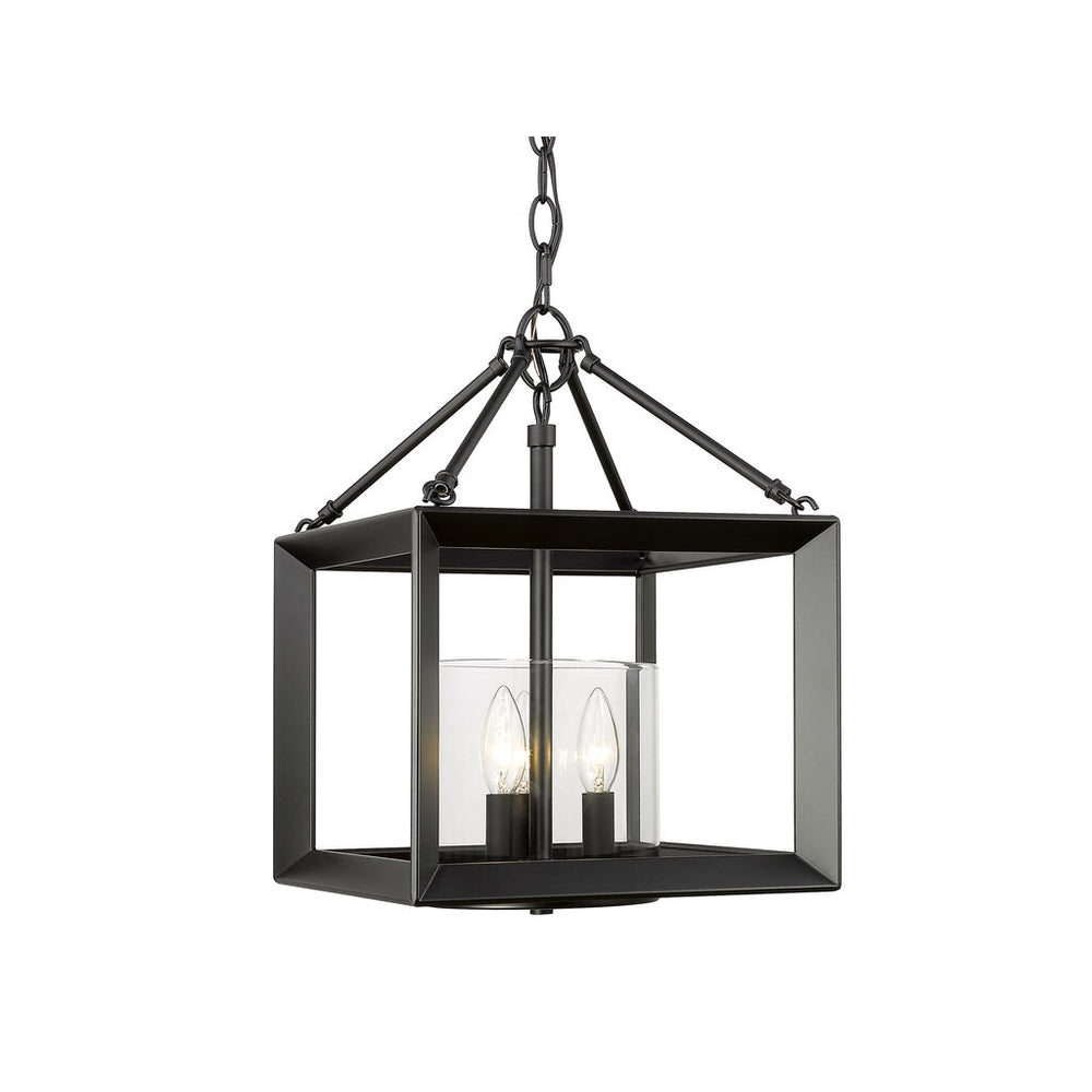 Modern lanterns featuring a handsome beveled cage design make an elegant statement in the Smyth collection. Clean geometry creates contemporary style with steel candles and candelabra bulbs encased in select glass options. The fixtures are offered in a variety of finishes. This 3-light mini chandelier creates a stylish focal point that can be mounted as a flush mount or hung as a pendant.