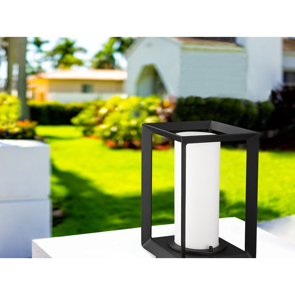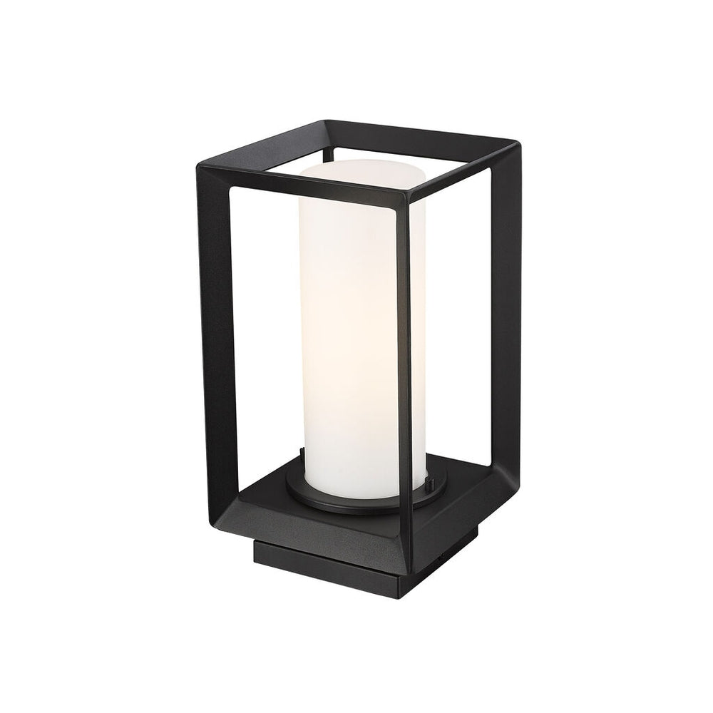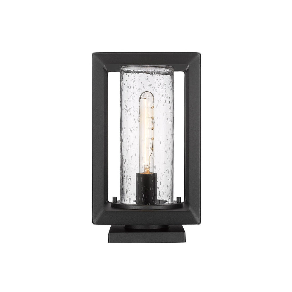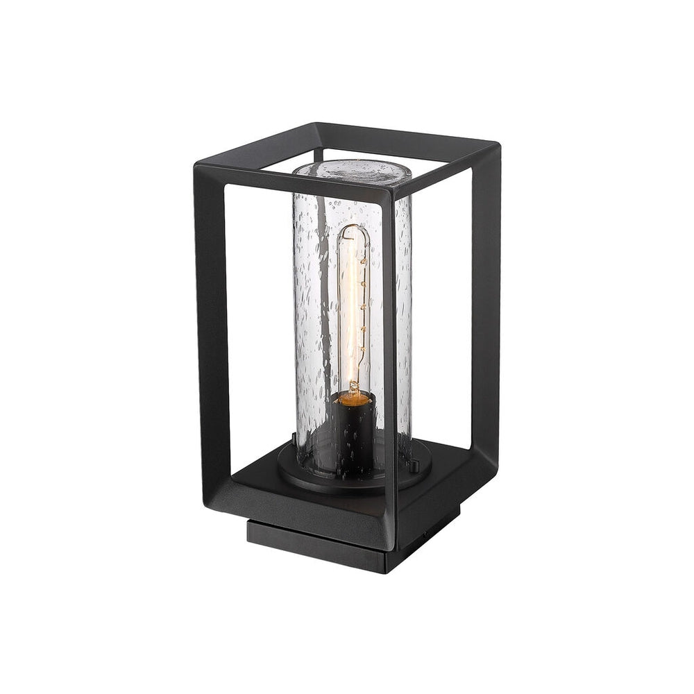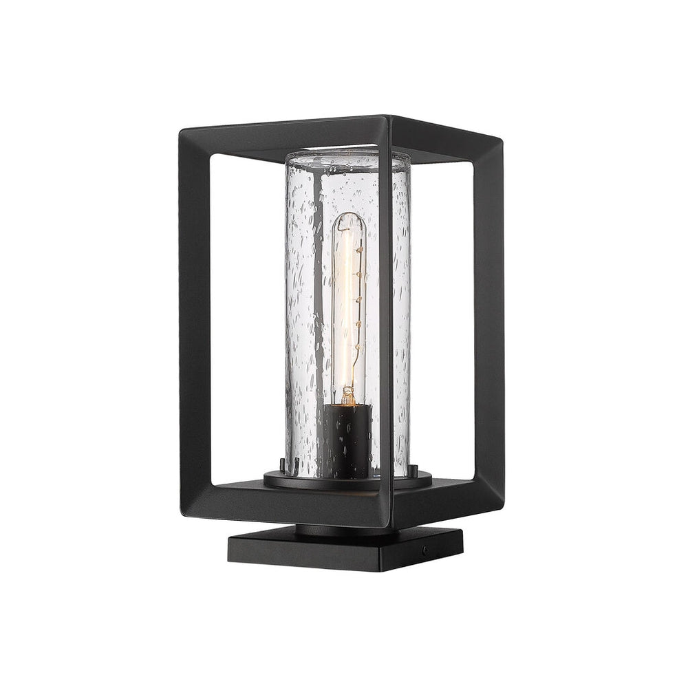 Modern lanterns featuring a handsome beveled cage design make an elegant statement in the Smyth Outdoor collection. Clean geometry creates a contemporary style. These wet-rated, open-cage fixtures are offered in a textured Natural Black finish with two glass options: Seeded or Opal. Smyth is an extensive collection that includes wet-rated options with a UV-coated layer to prevent fading.