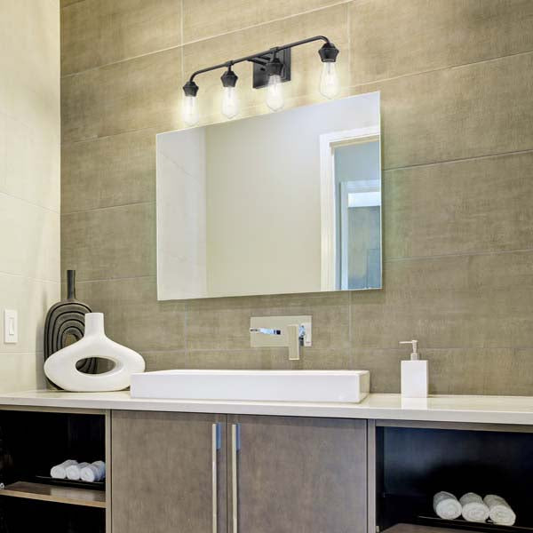 Create an atmosphere that's welcoming to visitors and residents alike with the Ormond Collection. This versatile series is designed to work with a number of decor styles. Straight lines are balanced by gentle curves for a contemporary look in multiple finishes. Straight lines are balanced by gentle curves for a contemporary look that works well with the modern finish and glass options. This four-light bath vanity fixture can be mounted up or down to capture that specific design you were looking for. Select a shadeless option for a minimalist aesthetic or choose between multiple glass options.