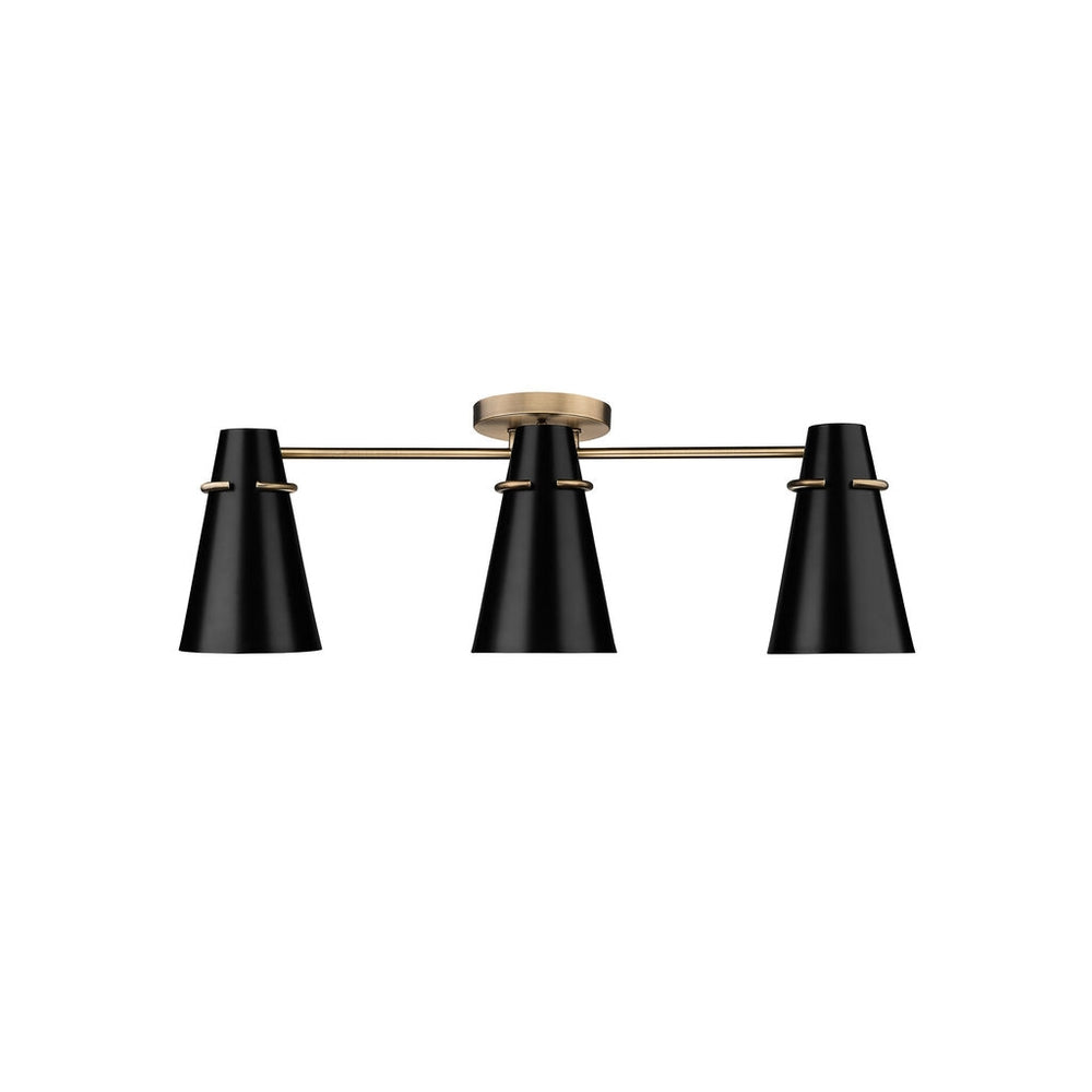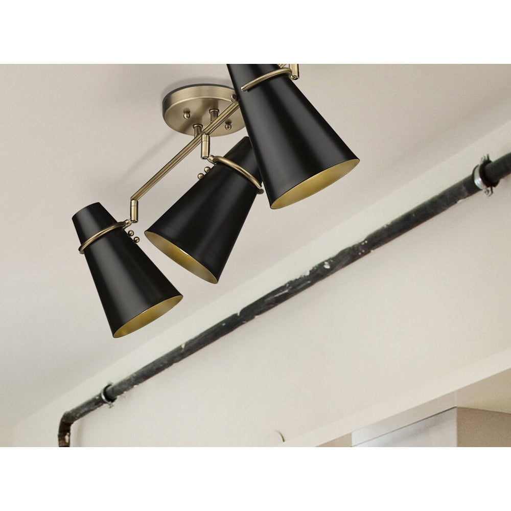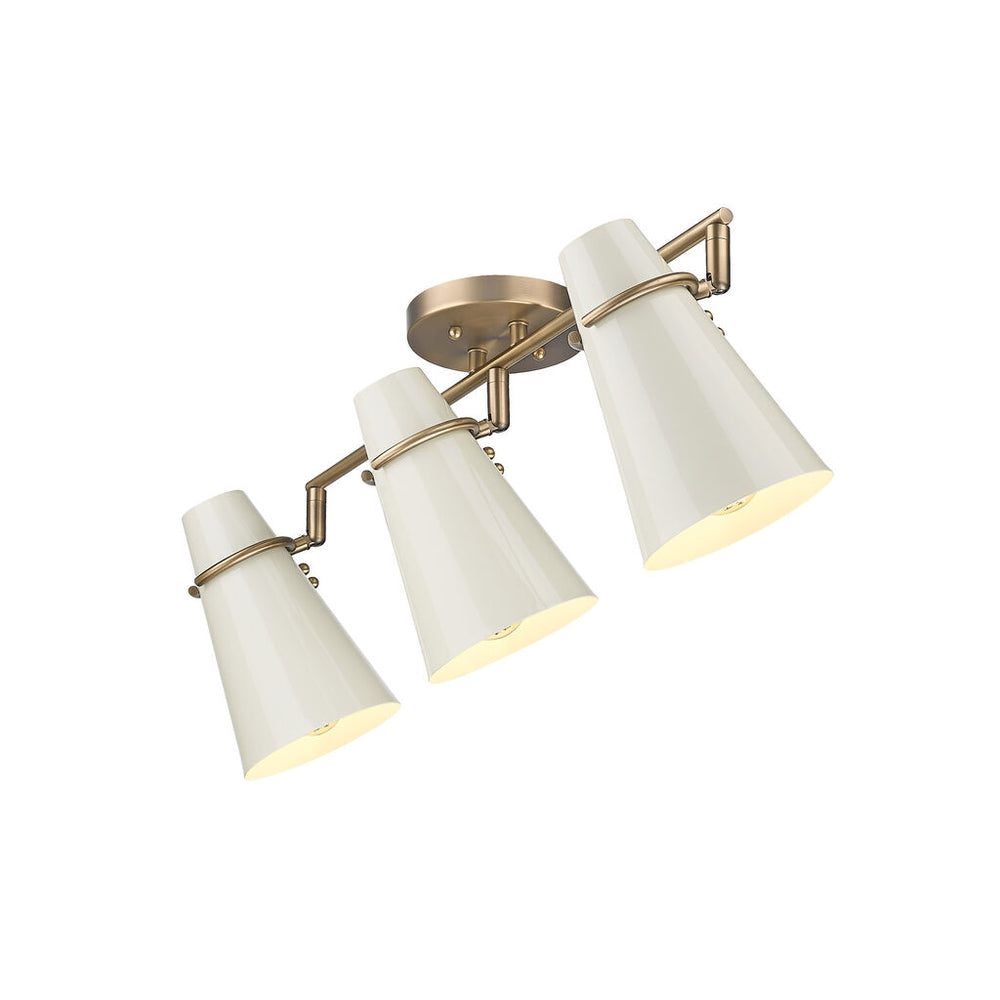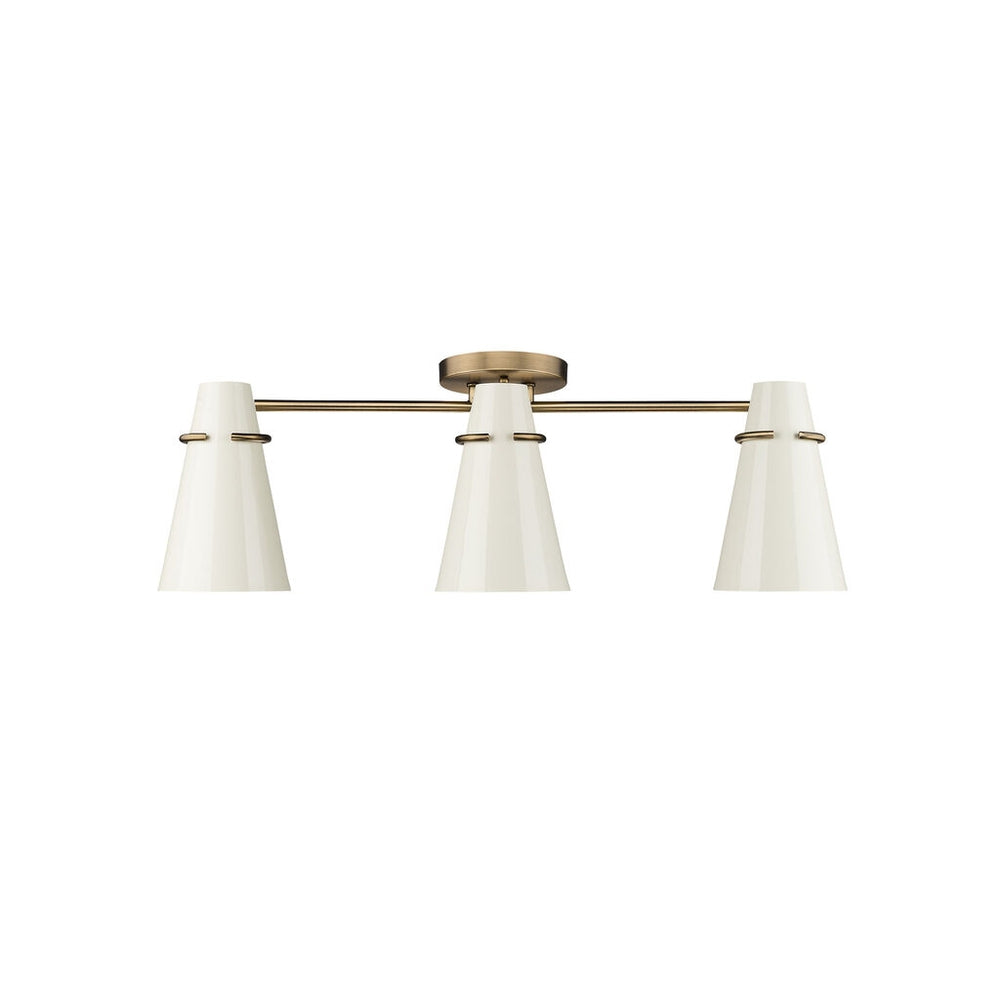 Add a touch of elegance to your home with the Mid-century modern-inspired Reeva collection. Paired with Modern Brass hardware and details, the clean look of the conical metal shades is offered in sophisticated color options. The black shade has a matte finish; while the ivory shade is glossy. The shade interiors are painted to match the exteriors. Personalize your fixtures by installing on the wall or ceilings, orienting horizontally or vertically, as well as pivoting the shades for directional lighting. Install these damp-rated fixtures in any room.