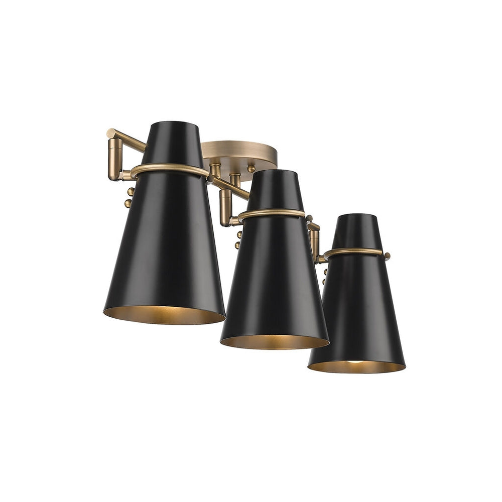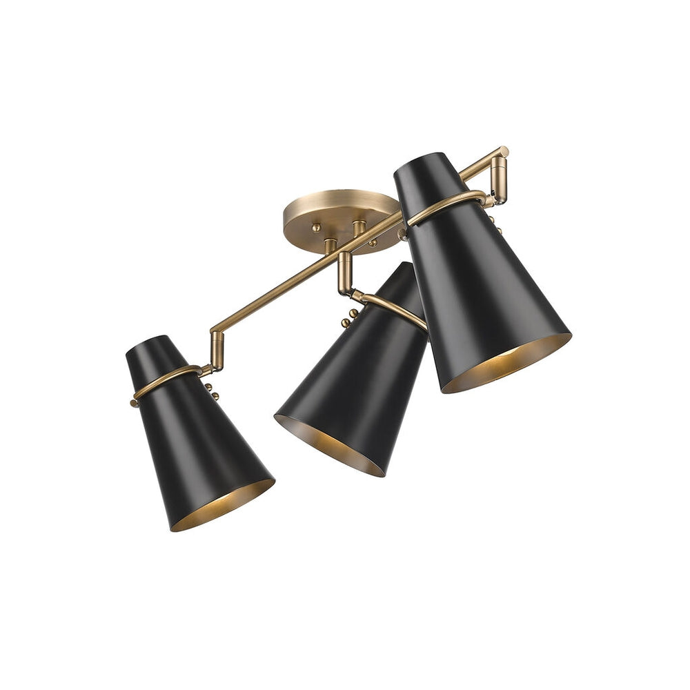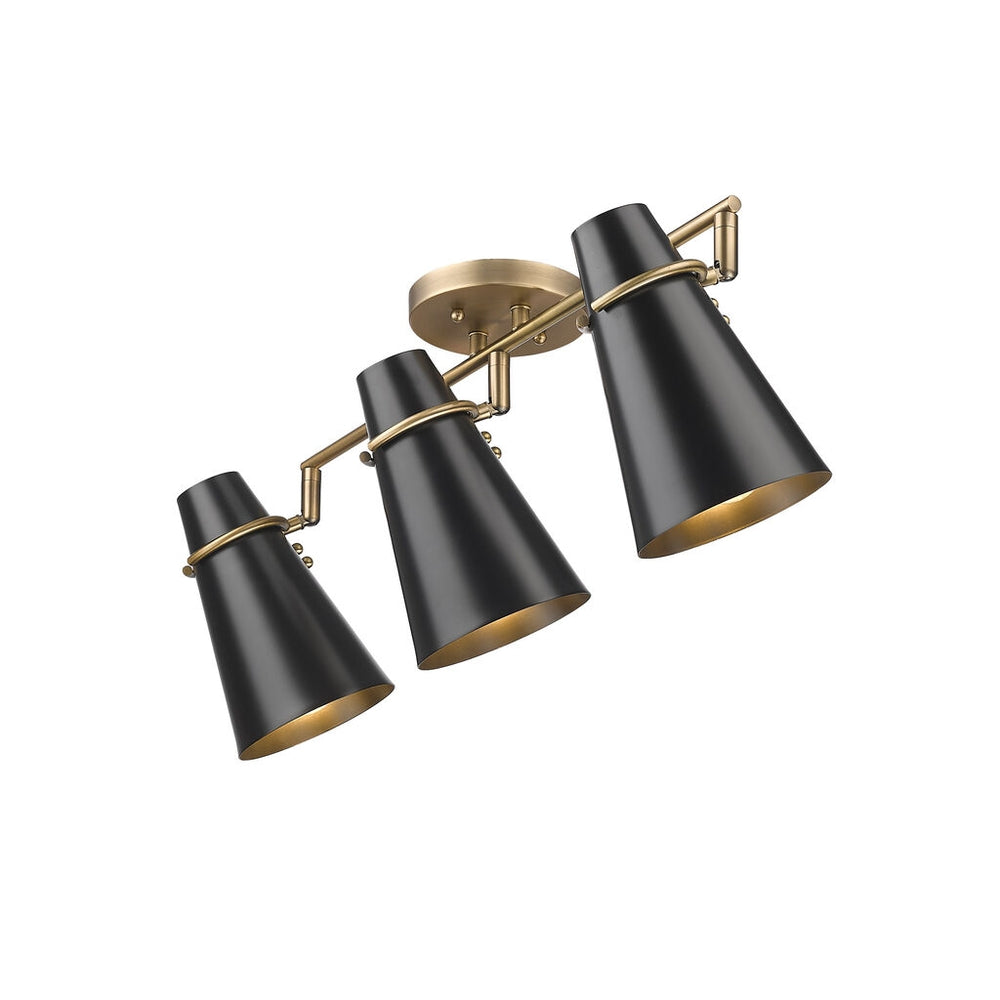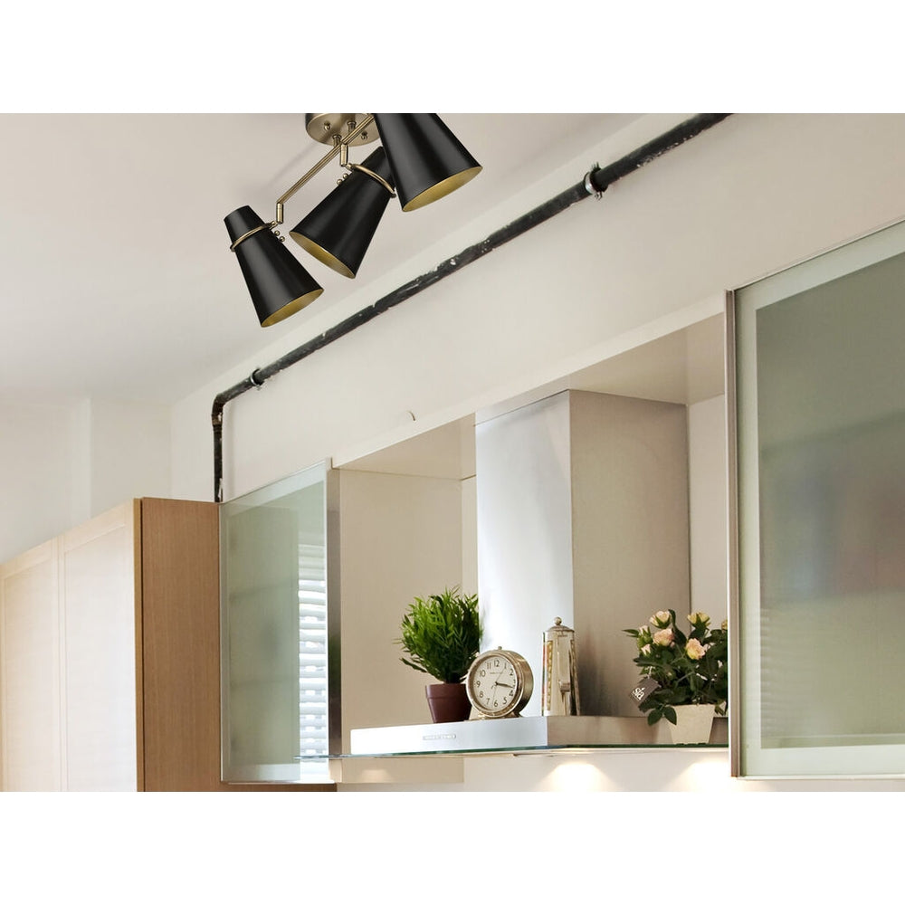 Add a touch of elegance to your home with the Mid-century modern-inspired Reeva collection. Paired with Modern Brass hardware and details, the clean look of the conical metal shades is offered in sophisticated color options. The black shade has a matte finish; while the ivory shade is glossy. The shade interiors are painted to match the exteriors. Personalize your fixtures by installing on the wall or ceilings, orienting horizontally or vertically, as well as pivoting the shades for directional lighting. Install these damp-rated fixtures in any room.