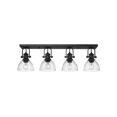 Golden Lighting 3118-4SF BLK-SD Hines 4 Light Semi-Flush in Matte Black with Seeded Glass Shade
