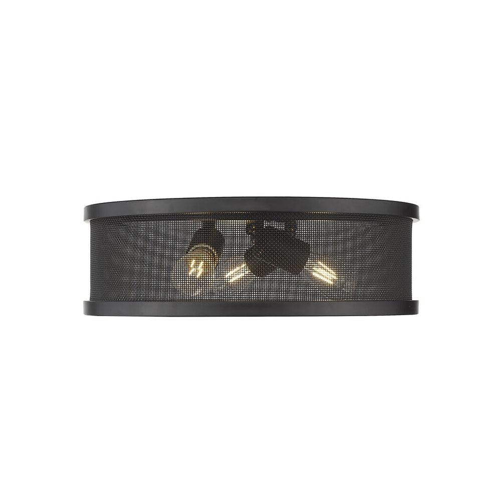 The simple, partially exposed lamps of the Channing collection reinforces the transitional and industrial-chic style. A mesh metal shade is the only accent for this utilitarian fixture. The contemporary shade partially shields the bulbs and gently diffusing the fixture's bright light. The low-profile design is offered in multiple finishes and sizes. Perfect for a bedroom, hallway, or bath, this fixture is approved for use in damp locations.
