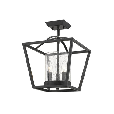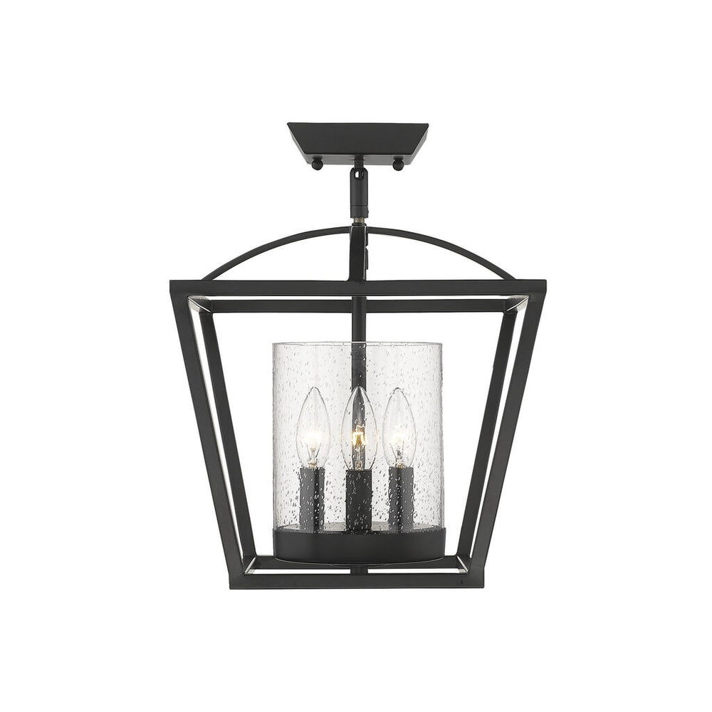 Golden Lighting 4309-SF BLK-BLK-SD Mercer Semi-Flush (Convertible) in Matte Black with Seeded Glass