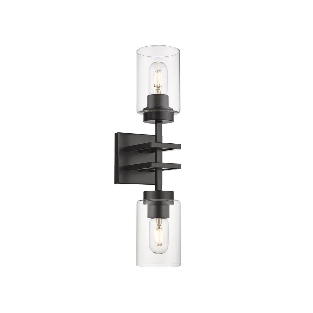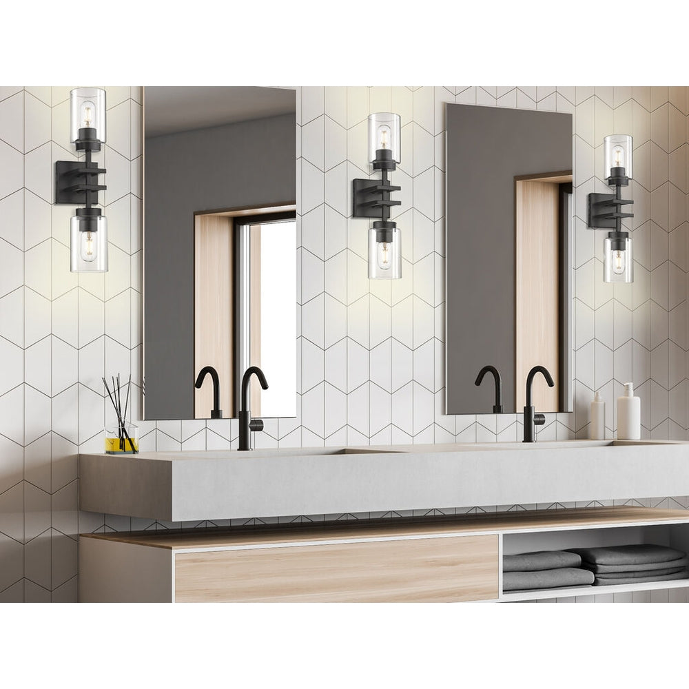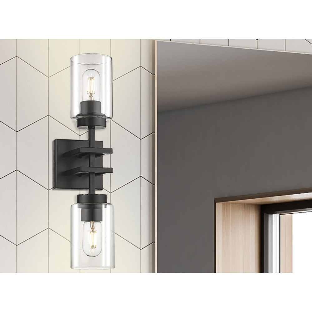 Golden Lighting 6070-2W BLK-BLK Tribeca 2 Light Wall Sconce in Matte Black with Matte Black