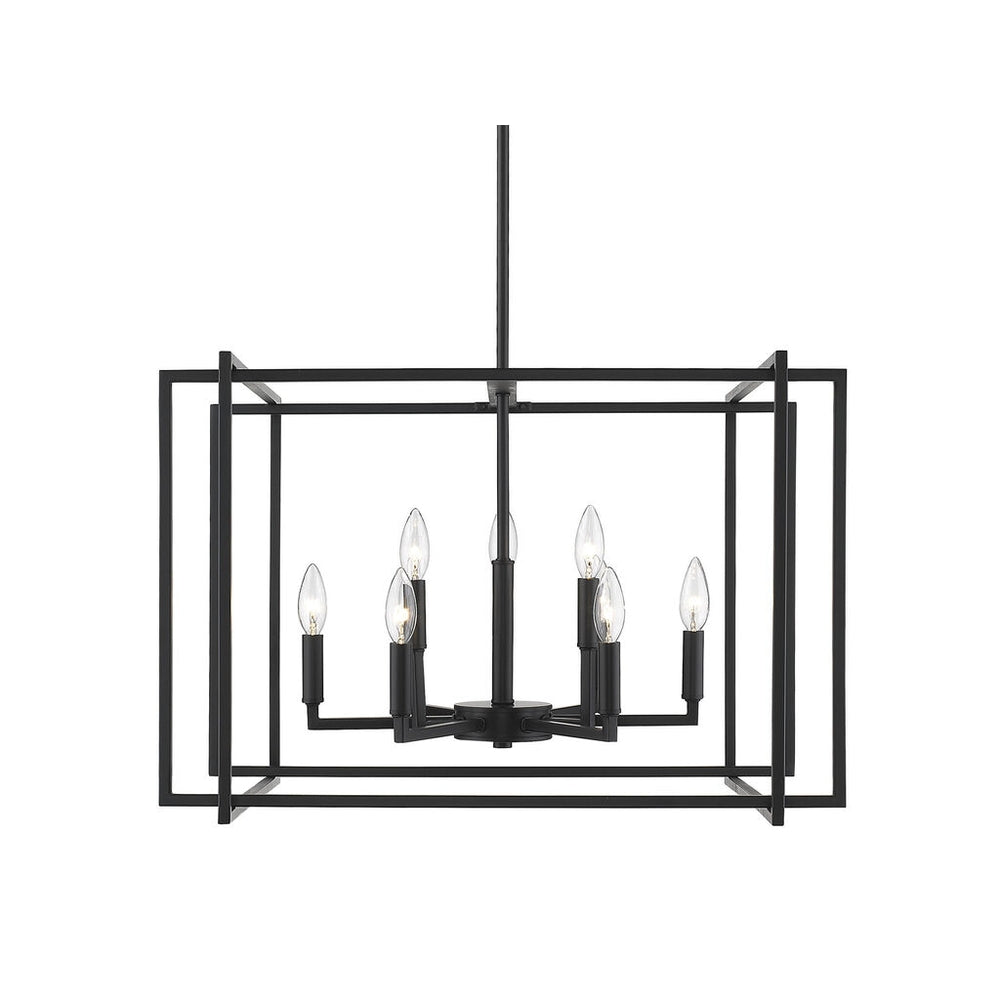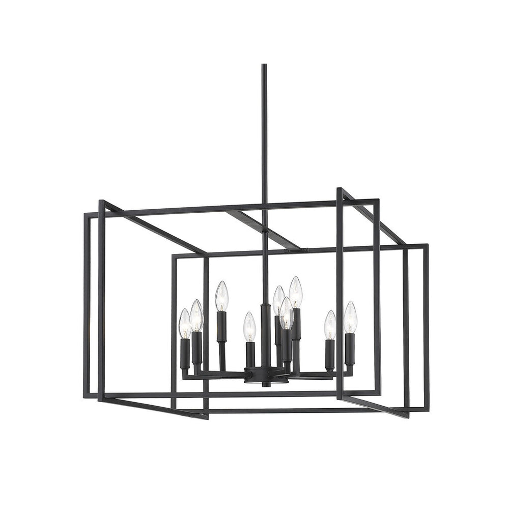 Tribeca is a contemporary, geometric series of customizable layered boxes. These striking open-cage fixtures bring sophisticated style to a space. Offered in a variety of finish options and silhouettes, including two-tone combinations, this clean transitional design pairs well with modern fashions. This 9-light chandelier creates a dramatic focal point graciously sized for larger living and dining areas.