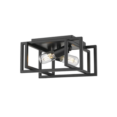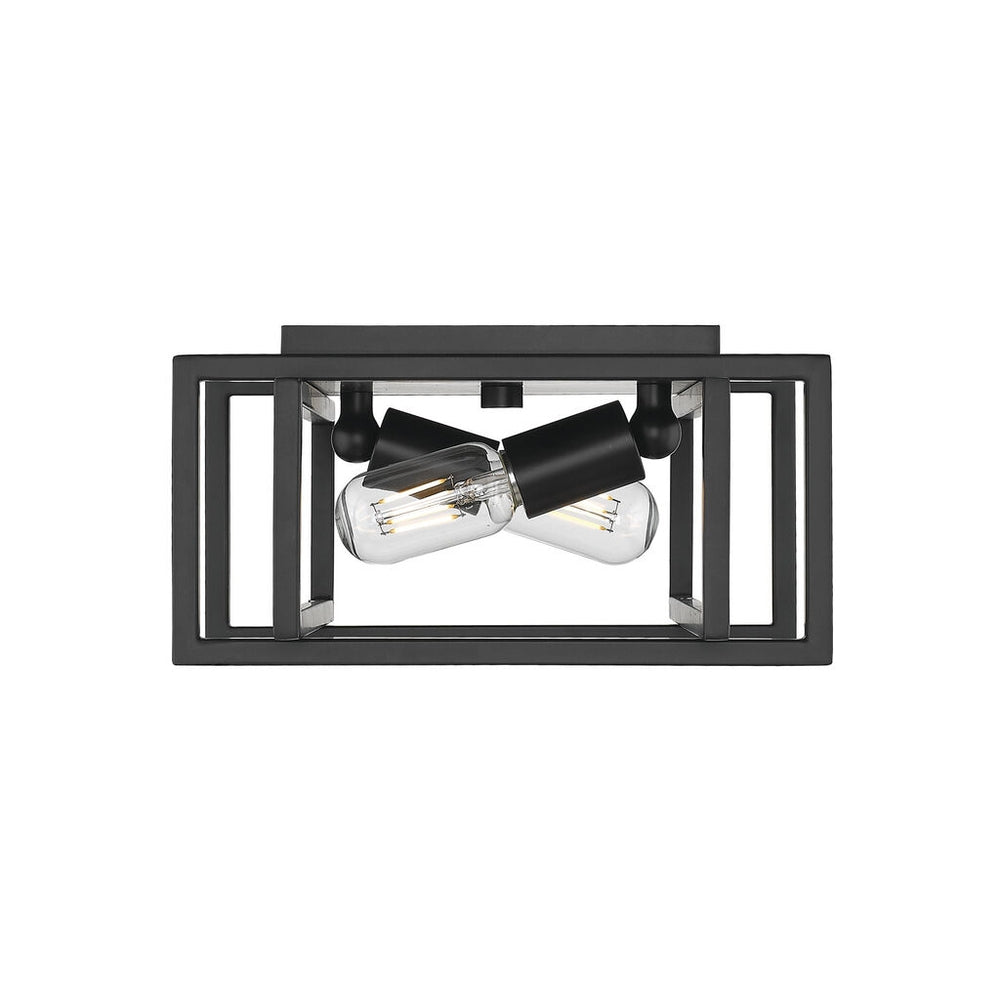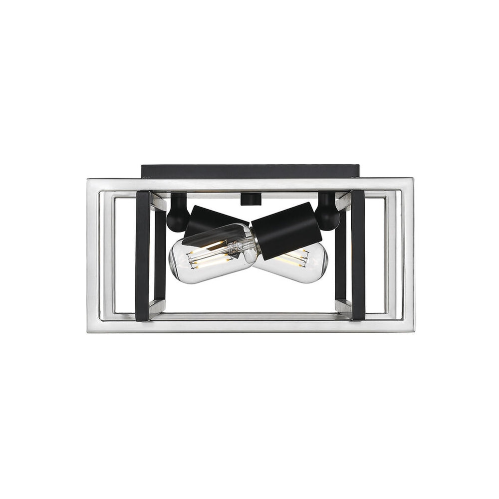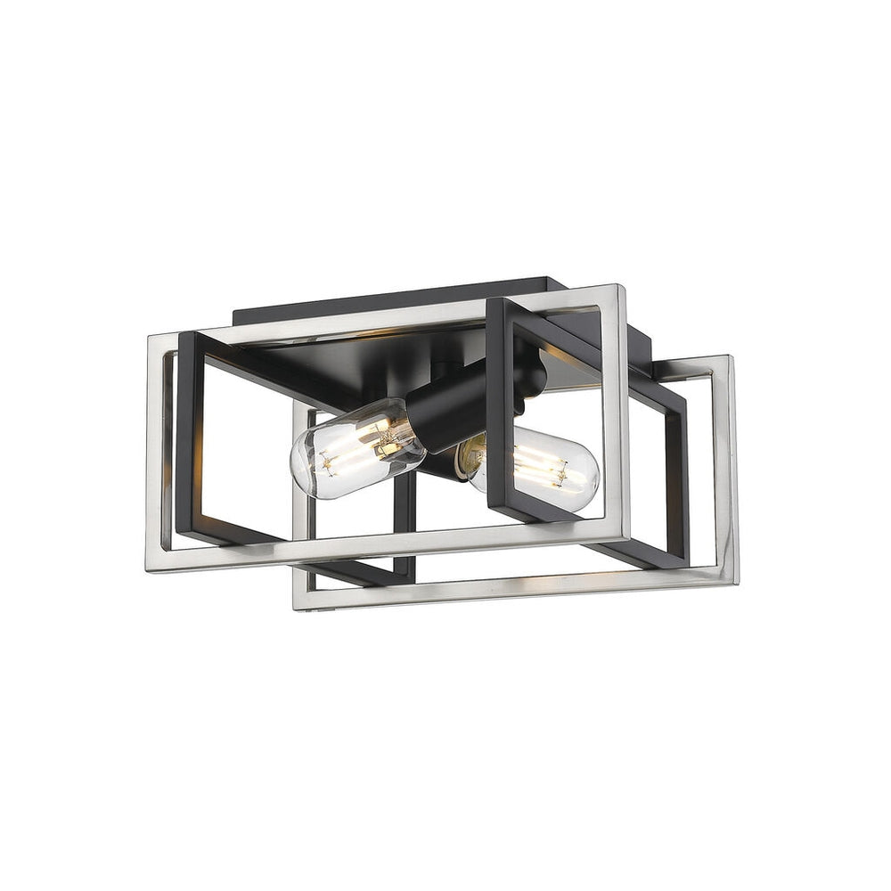 Tribeca is a contemporary, geometric series of customizable layered boxes. These striking open-cage fixtures bring sophisticated style to a space. Offered in a variety of finish options and silhouettes, including two-tone combinations, this clean transitional design pairs well with modern fashions. This 2-light flush mount creates a generous open area for widespread ambient lighting.