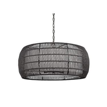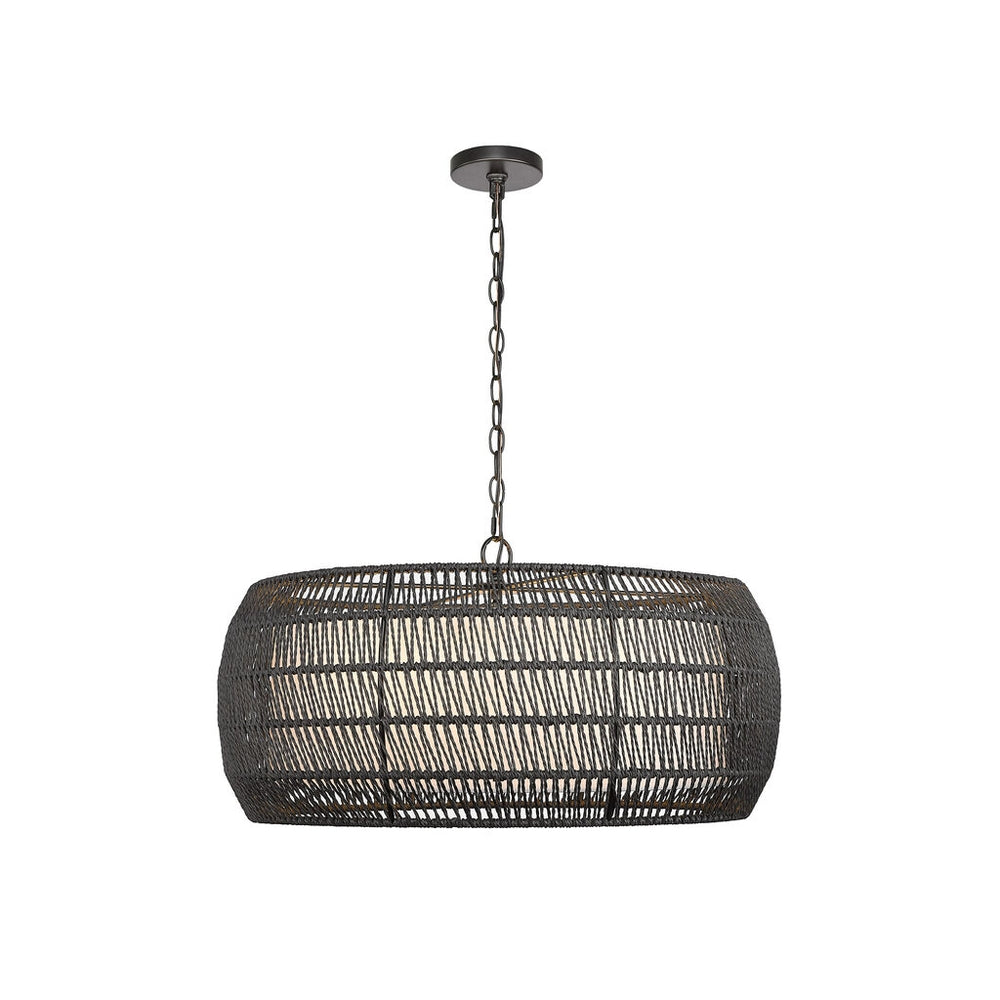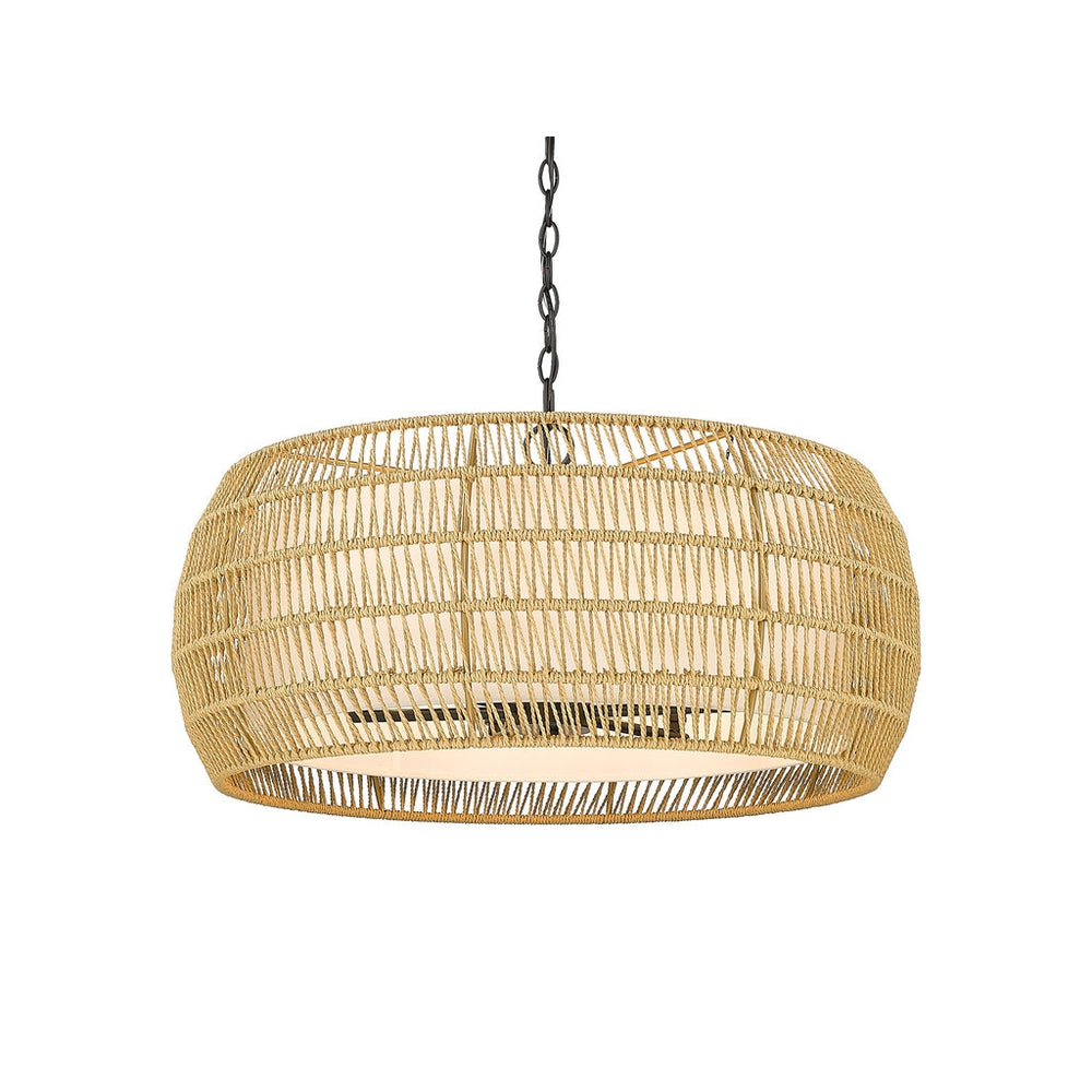 Golden Lighting 6805-6 BLK-NR Everly 6 Light Chandelier in Matte Black with Natural Rattan