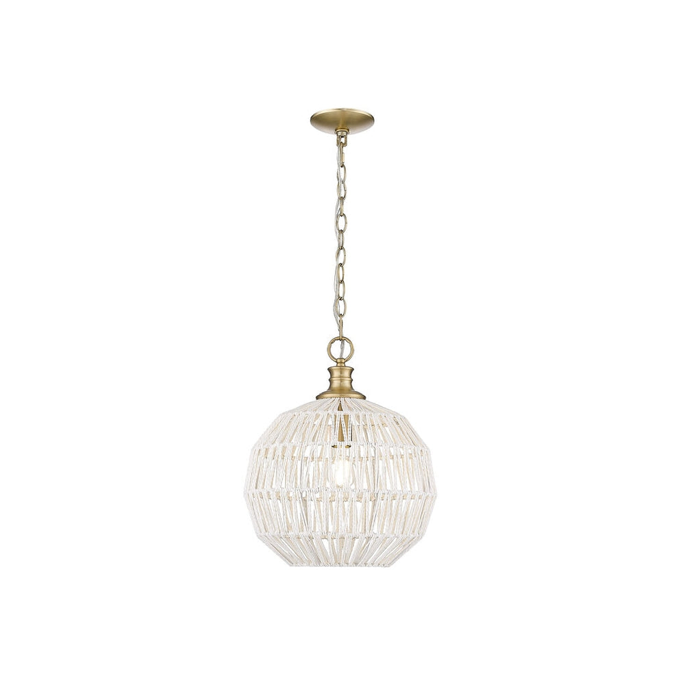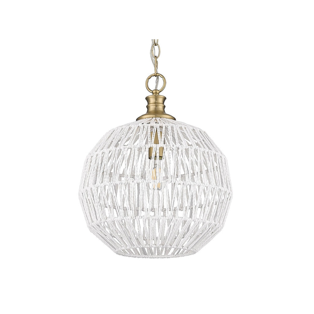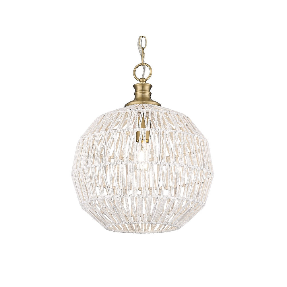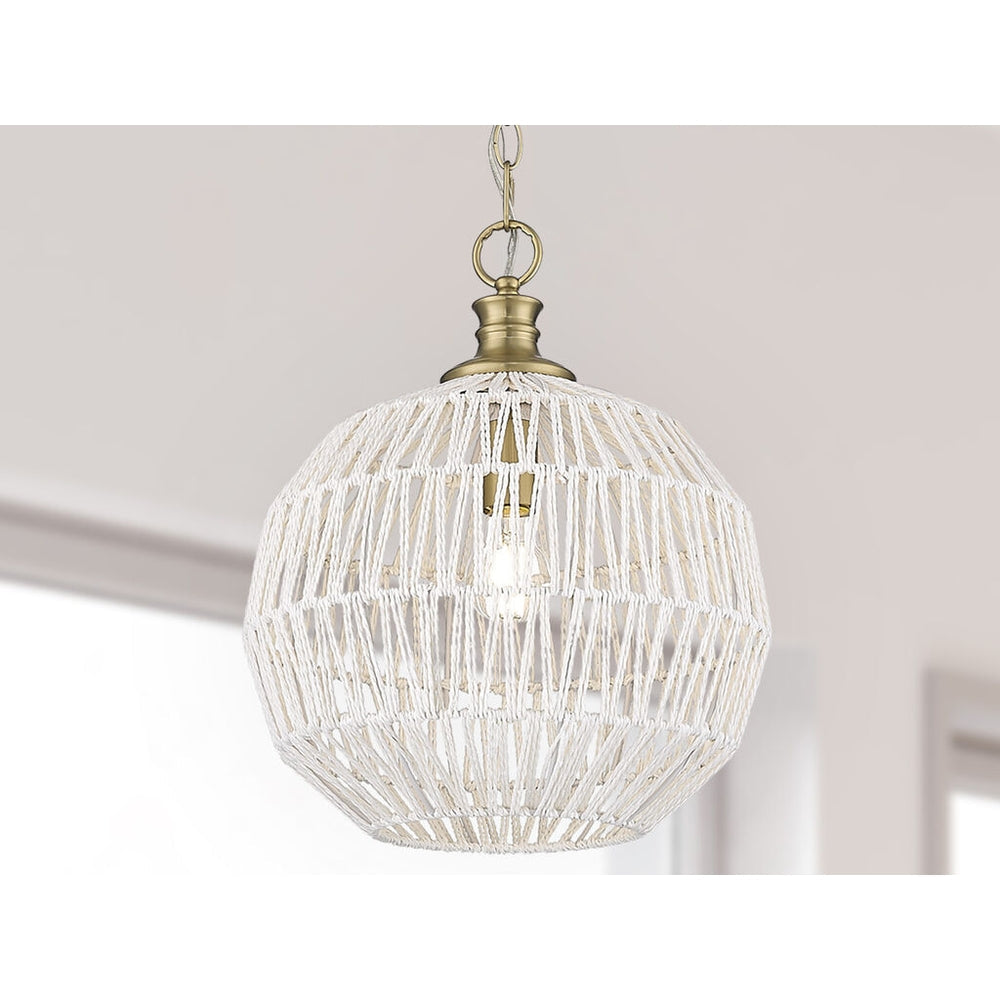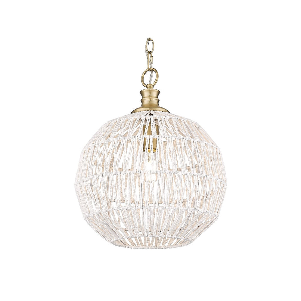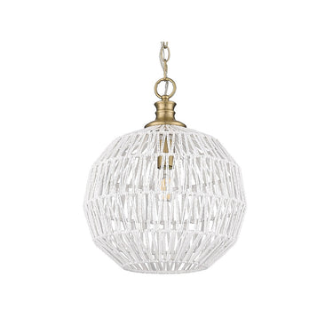 Golden Lighting 6933-M BLK-NR Florence Medium Pendant in Matte Black with Natural Raphia Rope