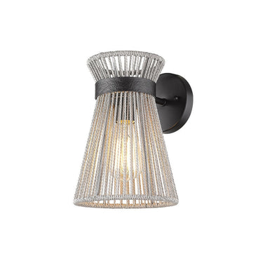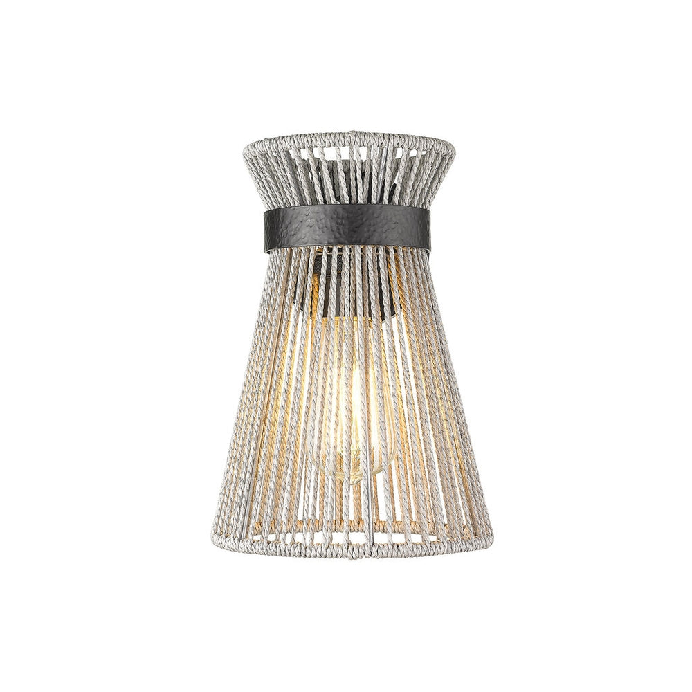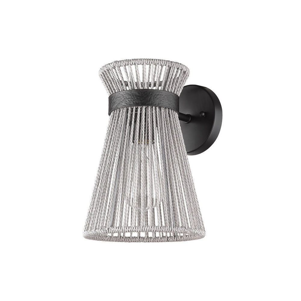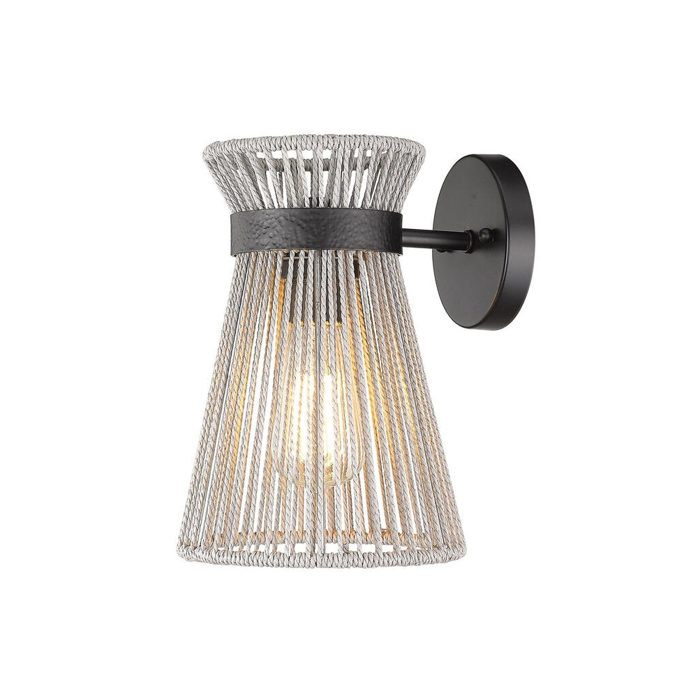 Golden Lighting 6938-1W BLK-BR Avon 1 Light Wall Sconce in Matte Black with Bleached Raphia