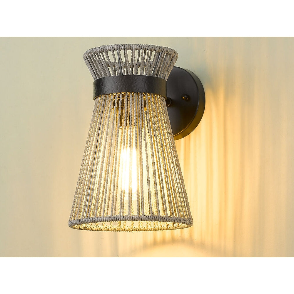 The Avon collection is simple sophistication in a natural form. The collection features twisted organic fibers stretched over sturdy steel frames. Tight in spots and wide in others, bleached Raphia rope is braided and stretched on matte black frames. To add visual interest, our designers used textured metal bands as accents. Avon's feminine silhouettes and neutral hues are perfect for transitional to contemporary homes. This collection has multiple fixture types. This damp-rated 1-light wall sconce is perfect for bathrooms, hallways, and bedrooms.